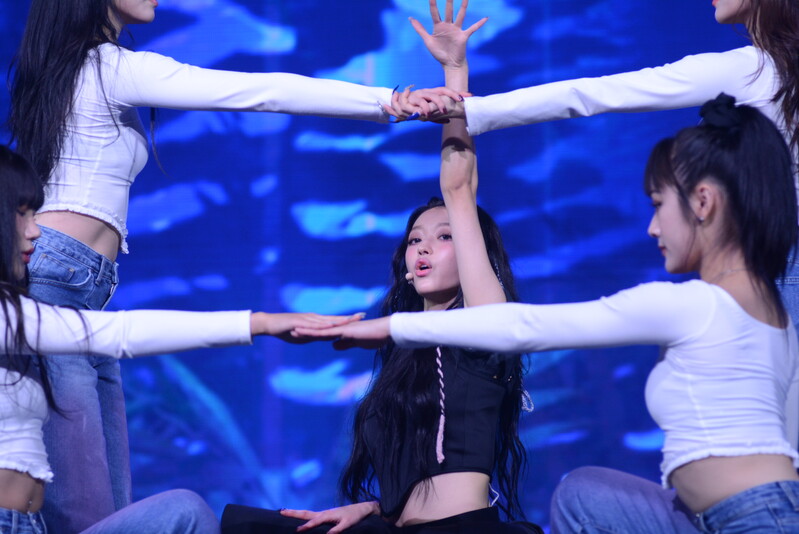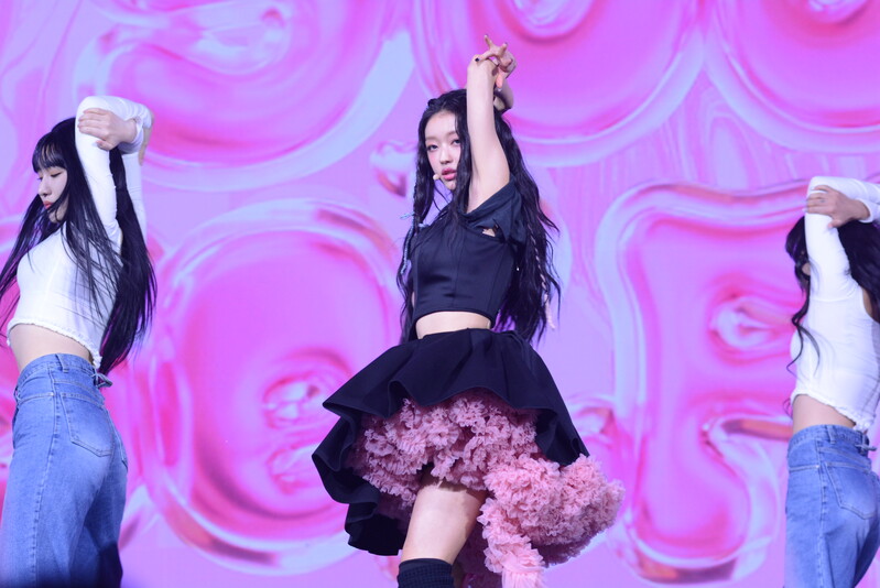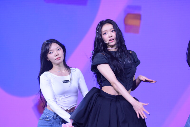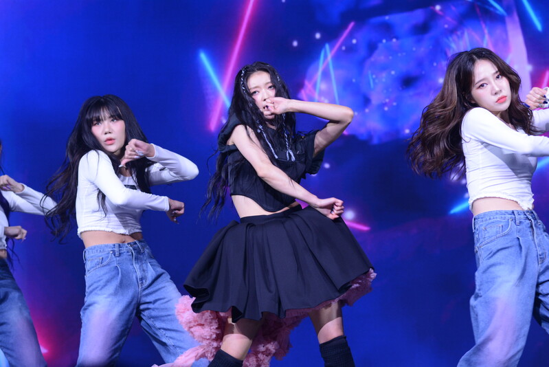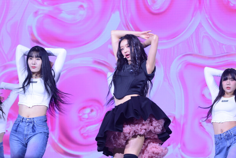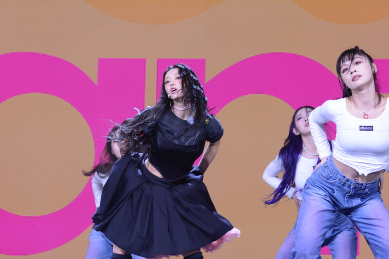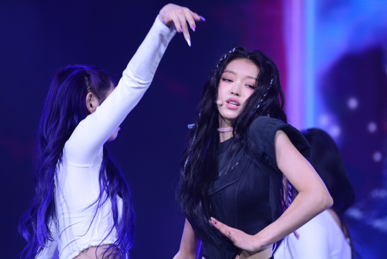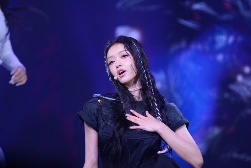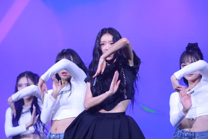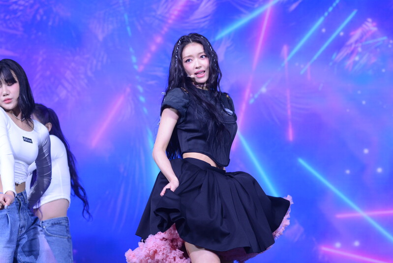 These photos, taken during the media showcase for K-Pop girl group Oh My Girl's YooA's second solo mini album "Selfish" shows, YooA performing her title track "Selfish" and one of the tracks included within her album "Lay Low."