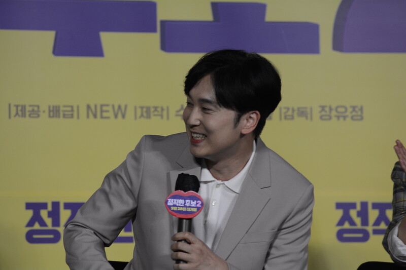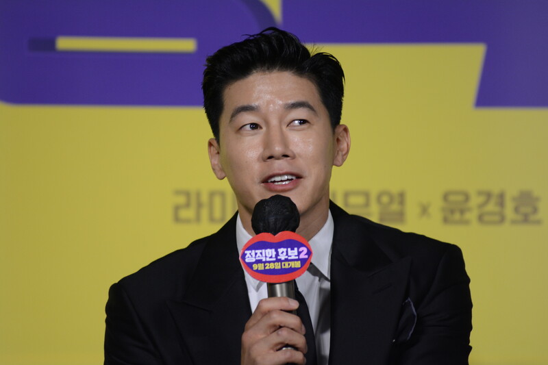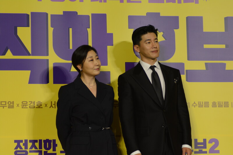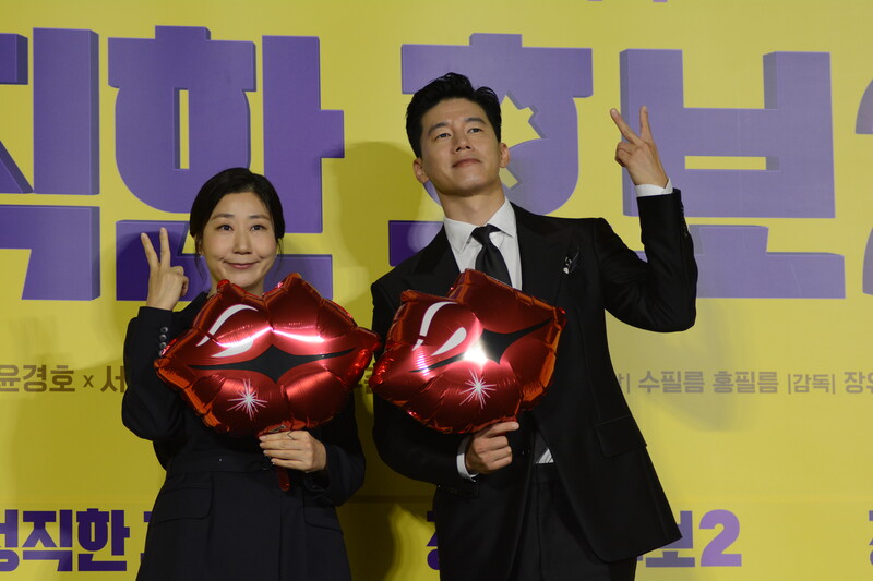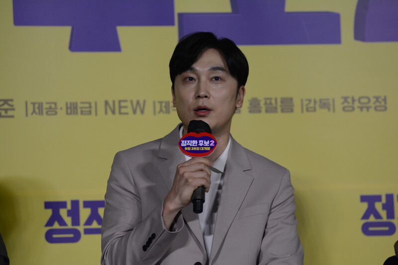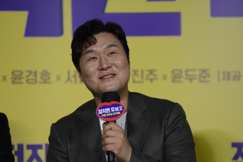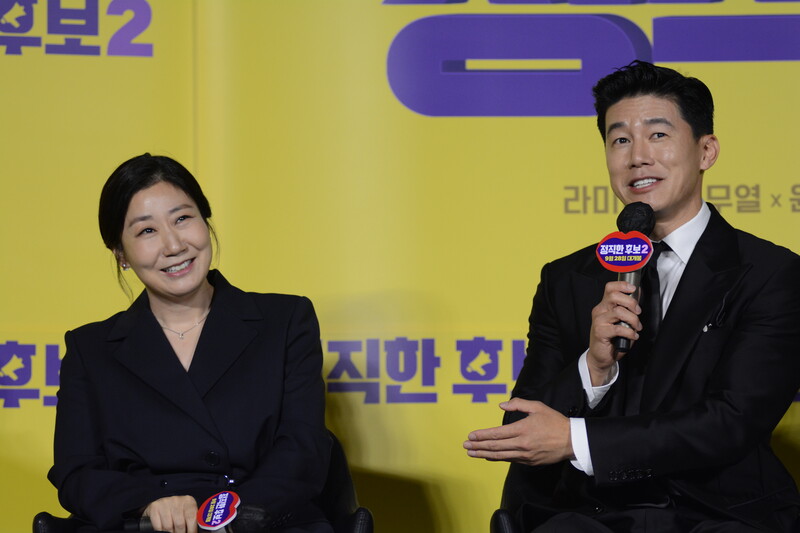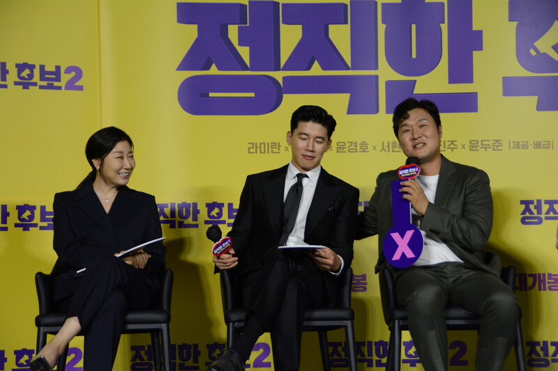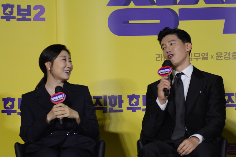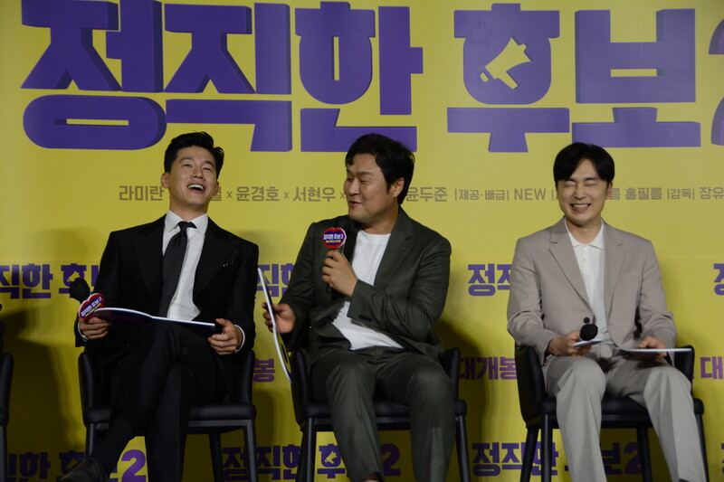 These photos, taken during the press conference of the upcoming movie "Honest Candidate 2" show, cast members Ra Mi-ran, Park Jin-joo Kim Mu-yeol, Yoon Kyung-ho and Seo Hyeon-woo.