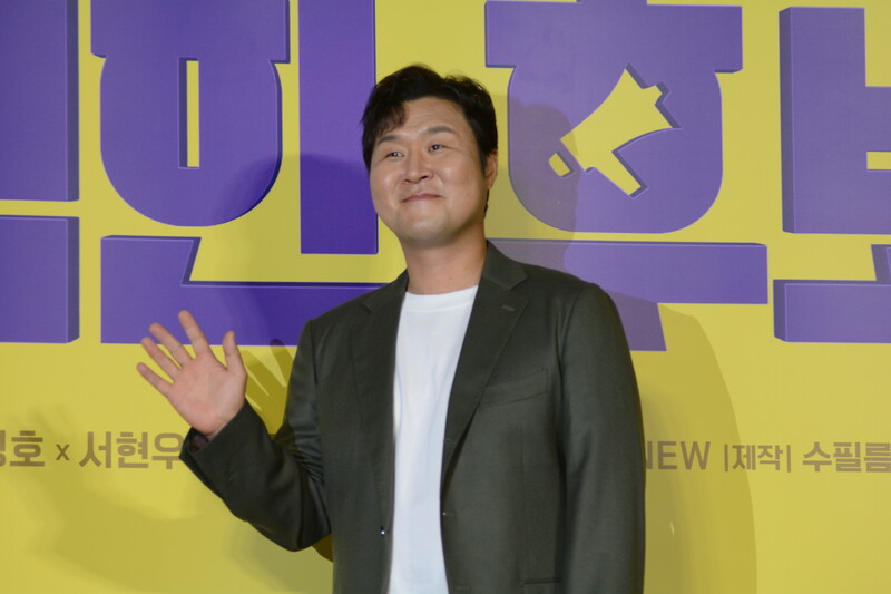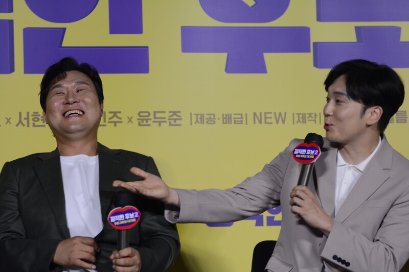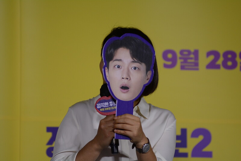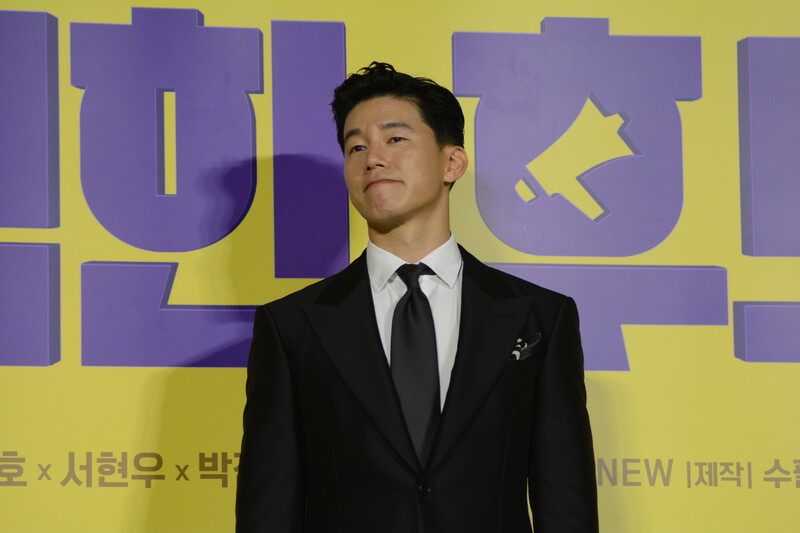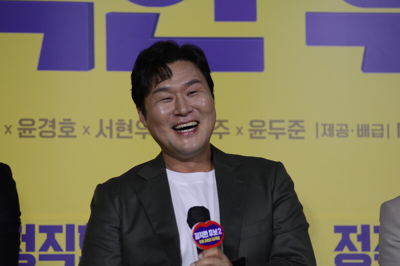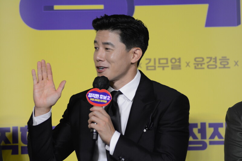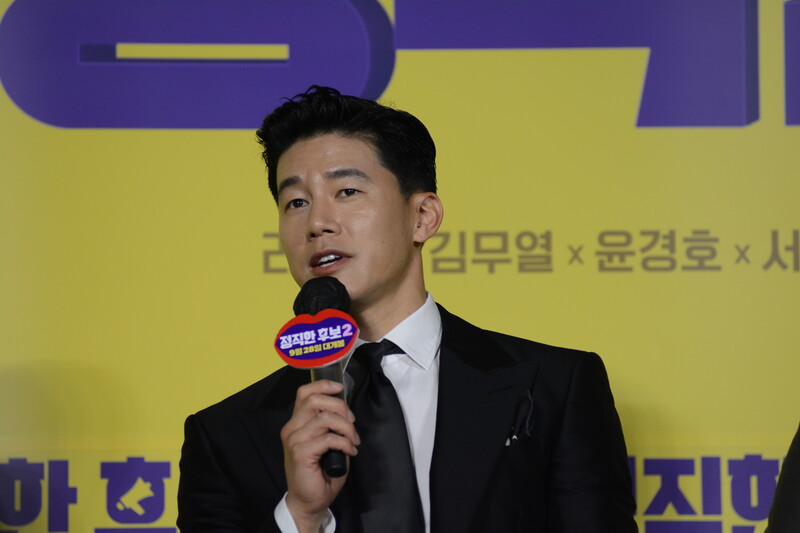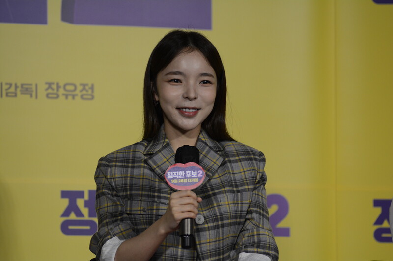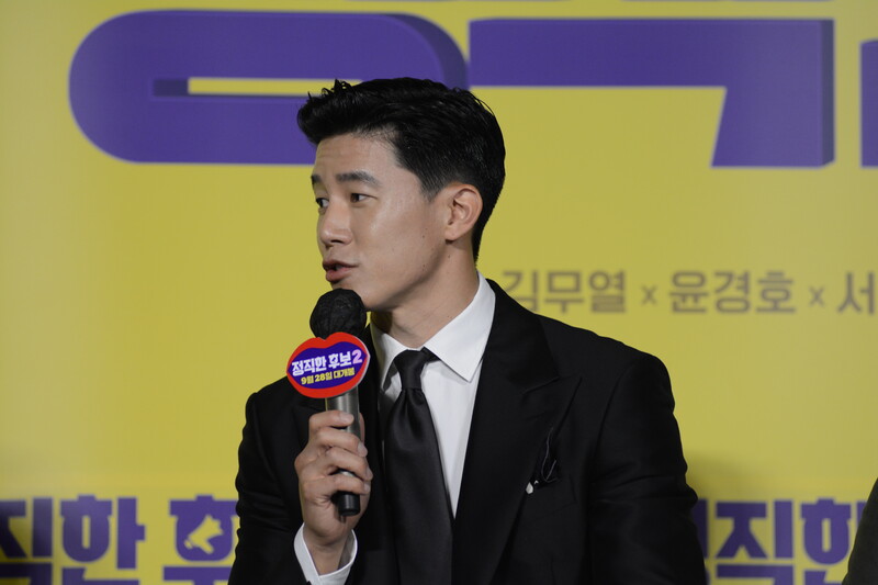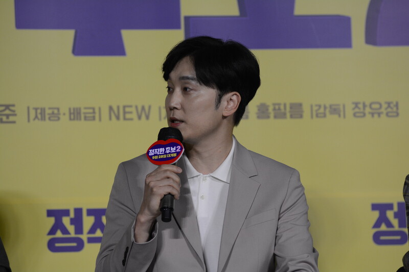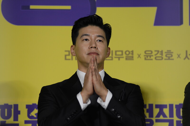 These photos, taken during the press conference of the upcoming movie "Honest Candidate 2" show, cast members Ra Mi-ran, Park Jin-joo Kim Mu-yeol, Yoon Kyung-ho and Seo Hyeon-woo.