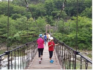 | ▲ 수입천을 가로지는 구름다리, 다리 아래에는 옥빛 같이 맑은 계곡물이 흐른다. This shows the bridge running across he Su-Ibcheon. |