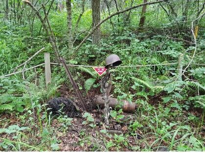 In the middle of the trekking course, there stood a wooden monument wearing a rusty steel helmet. Behind the tangled barbed wires where wooden pillars were rolling around, the monument looked rather lonely.