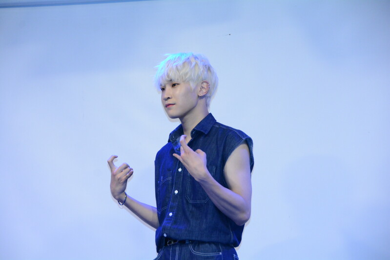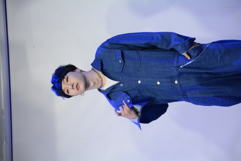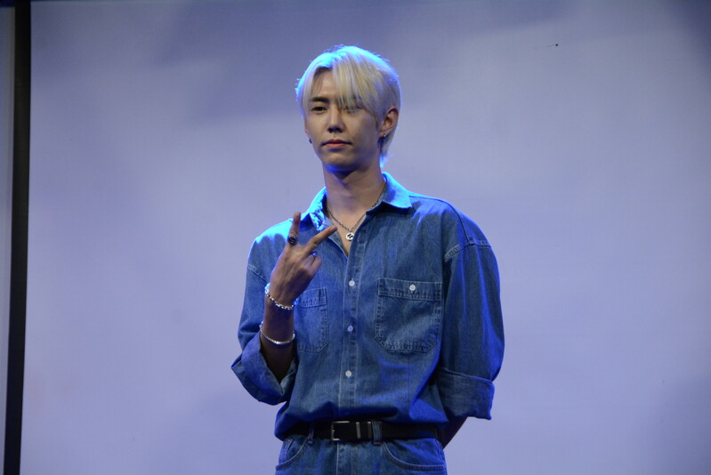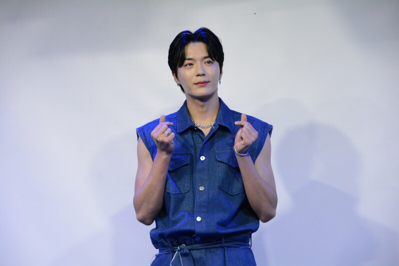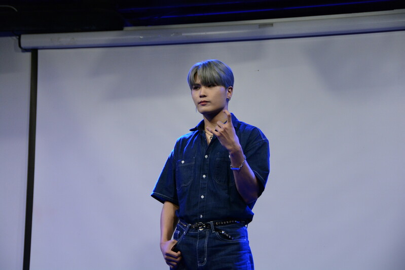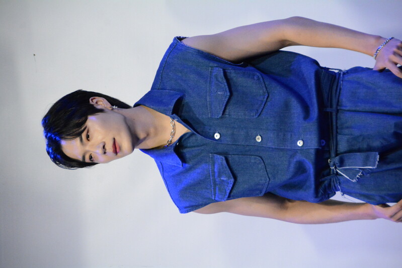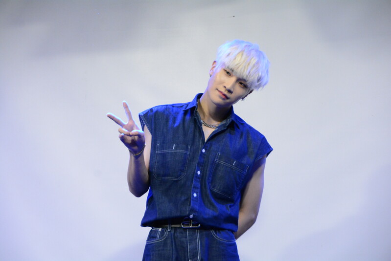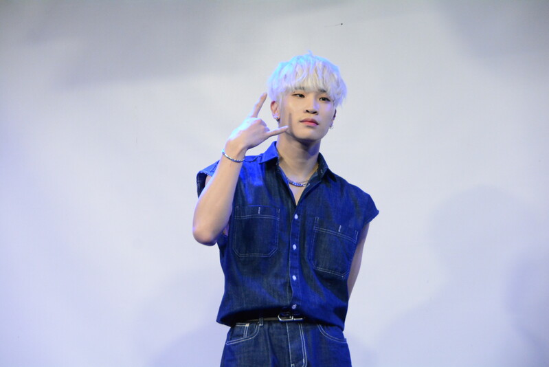 These photos, taken during the debut media showcase of K-pop boy group "ABLUE" and their debut album "Color The Start" show members pose for individual and group photos.