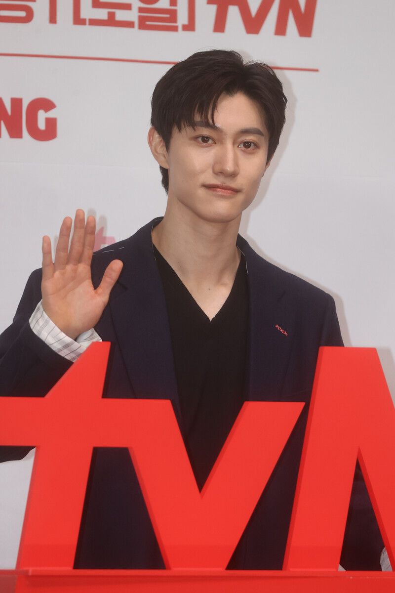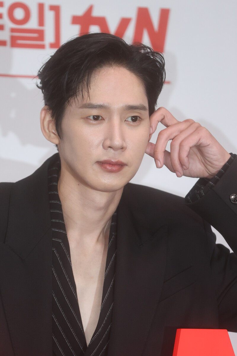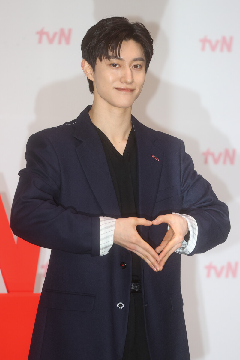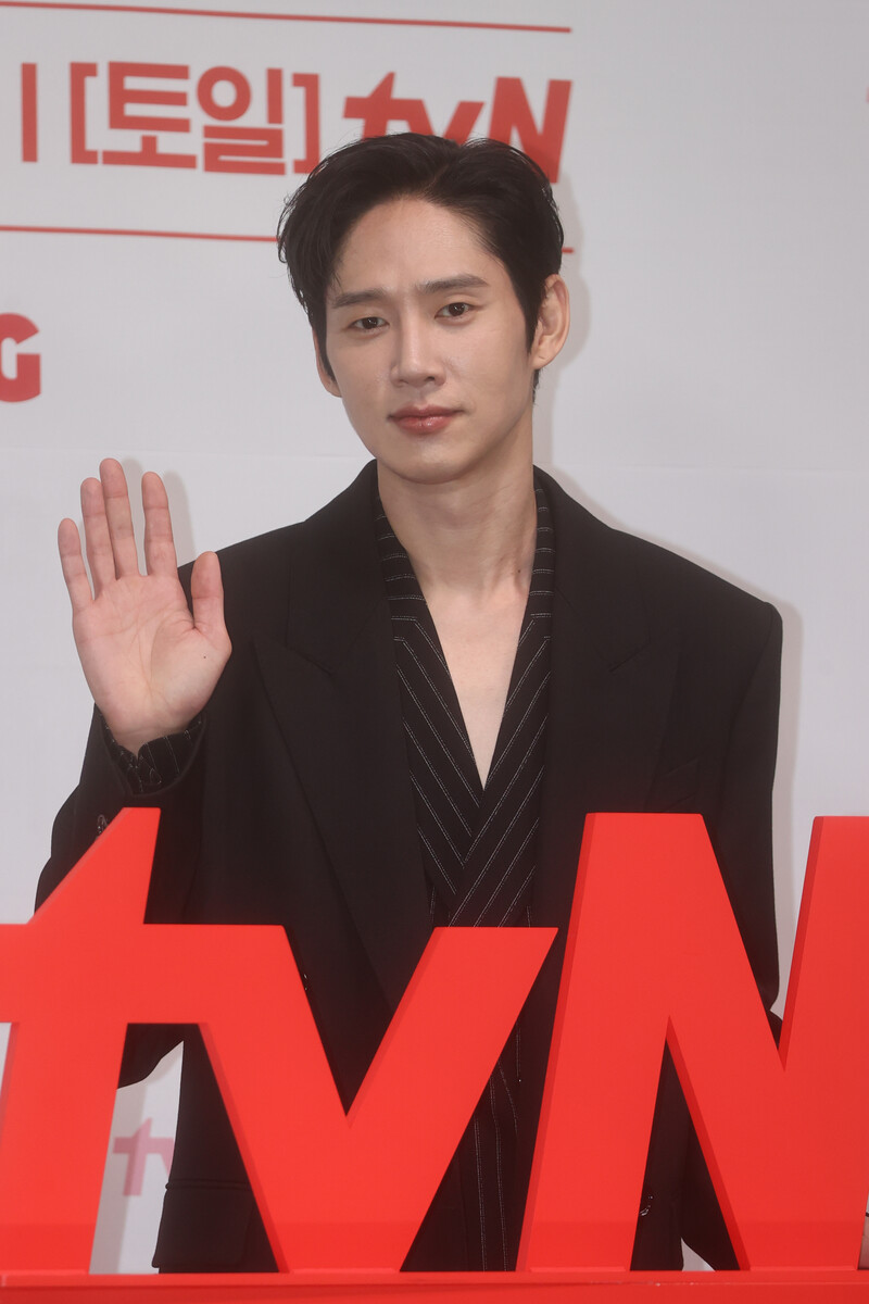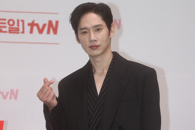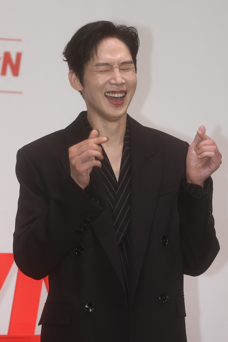The stars of the new drama "Queen of Tears" -- Lee Joo-bin, Kwak Dong-yeon, Kim Ji-won, Kim Soo-hyun and Park Sung-hoon are posing for photos during a publicity event in Seoul on March 7, 2024. The first episode of the drama will be aired by the local cable TV network tvN on March 9. (Yonhap)