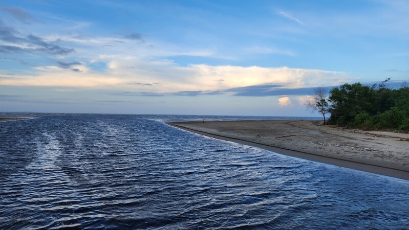| ▲ 멈바꿋 비치. 이 지점이 남중국해와 멈바꿋 맹그로브 강물이 만나는 곳이다. Membakut beach. |