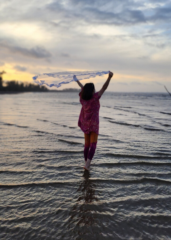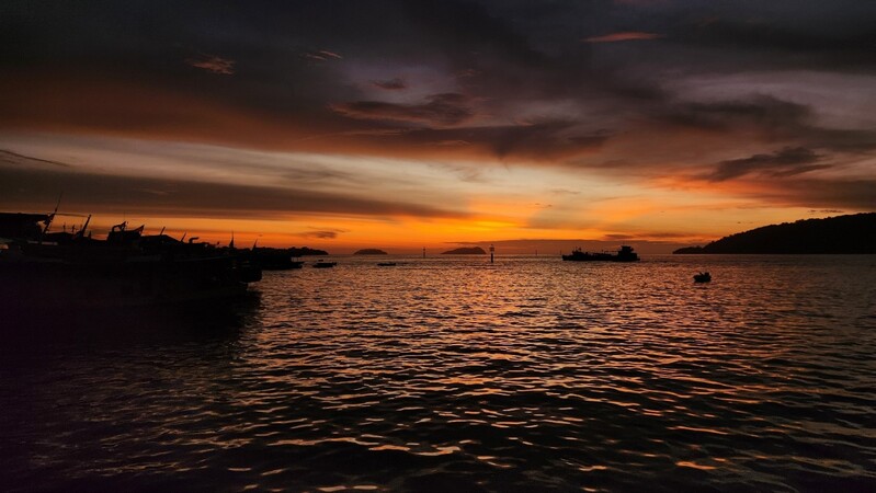 반딧불이를 보기 위해 일몰 전에 도착한 멈바꿋 선셋 비치. 남중국해와 맞닿는 지점의 해안은 바닷물이 짙은 브라운 빛(황토물처럼 혼탁하지 않고)이었고, 바닷길은 맹그로브 숲으로 이어진 강 쪽으로 접어들수록 붉은색에 가까운 빛깔이 드리워져 매우 이색적인 풍광이었다.