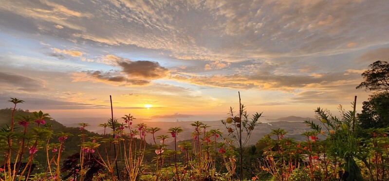 꽤 높은 포토존까지 오르는 내내 안개와 습기로 앞이 거의 안 보이더니, 목표지점에 올라서자 기다렸다는 듯 장관을 이루며 일몰의 거대한 파노라마를 펼치는 모습이라니…….