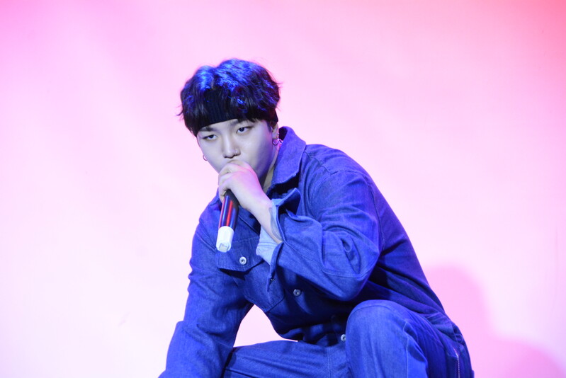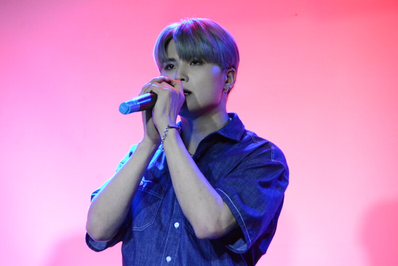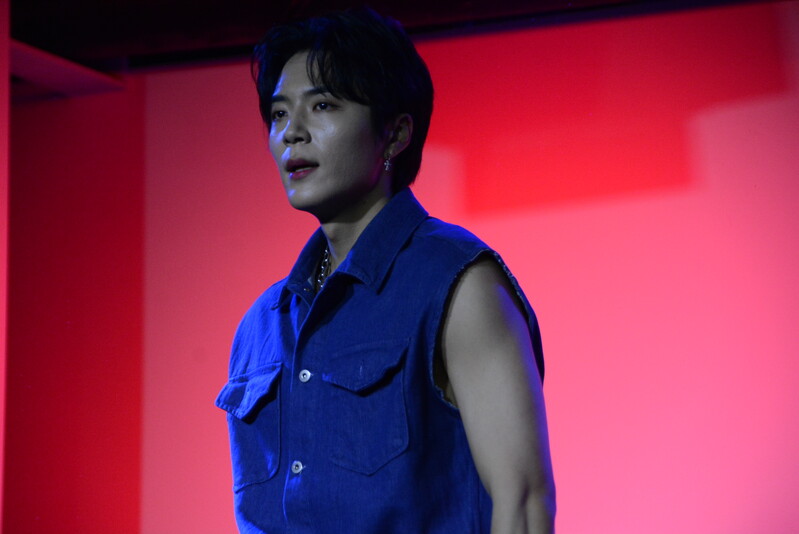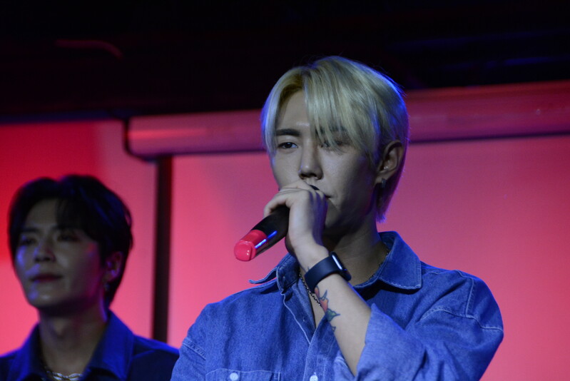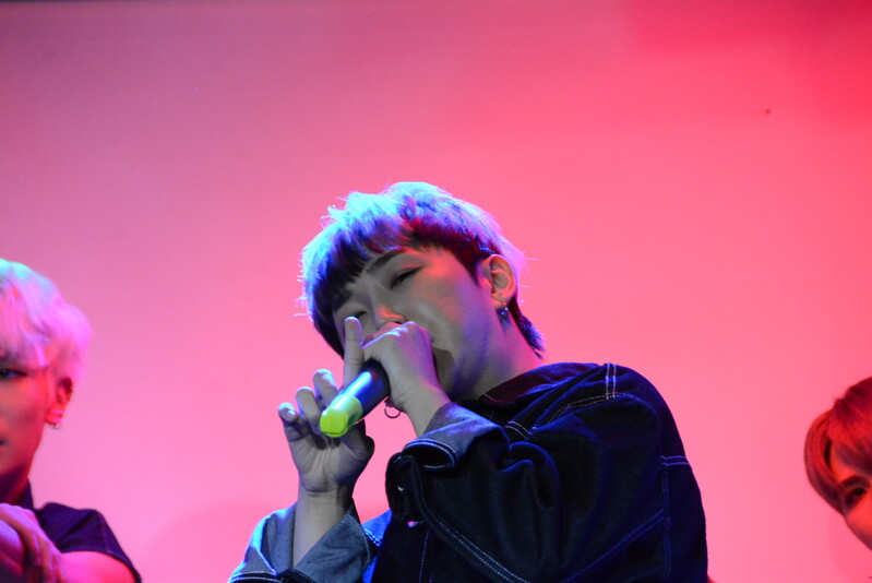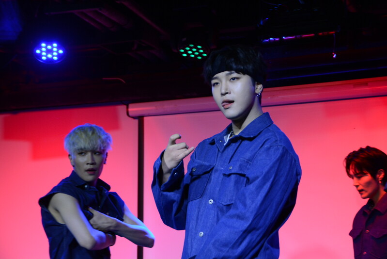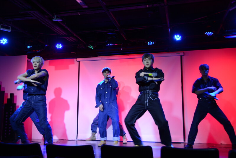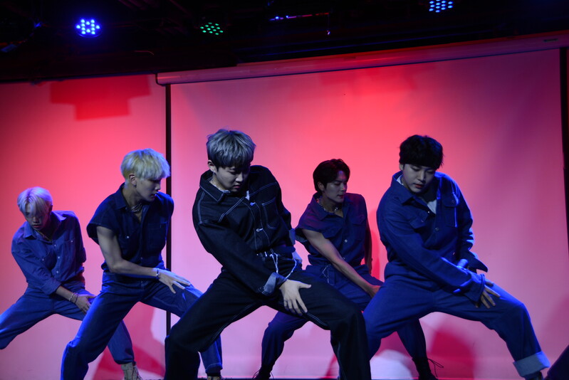 These photos, taken during debut media showcase of K-pop boy group ABLUE show members performing their title track "Carnival" from group's debut album "Color the Start."