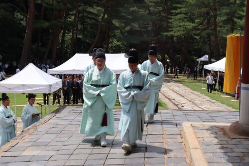 ▲ This photo, provided by the Cultural Heritage Administration's Royal Palaces and Tombs Center, shows a scene from last year’s memorial rite at Geonwolleung within Donggureung, Guri. (PHOTO NOT FOR SALE) (Yonhap) |