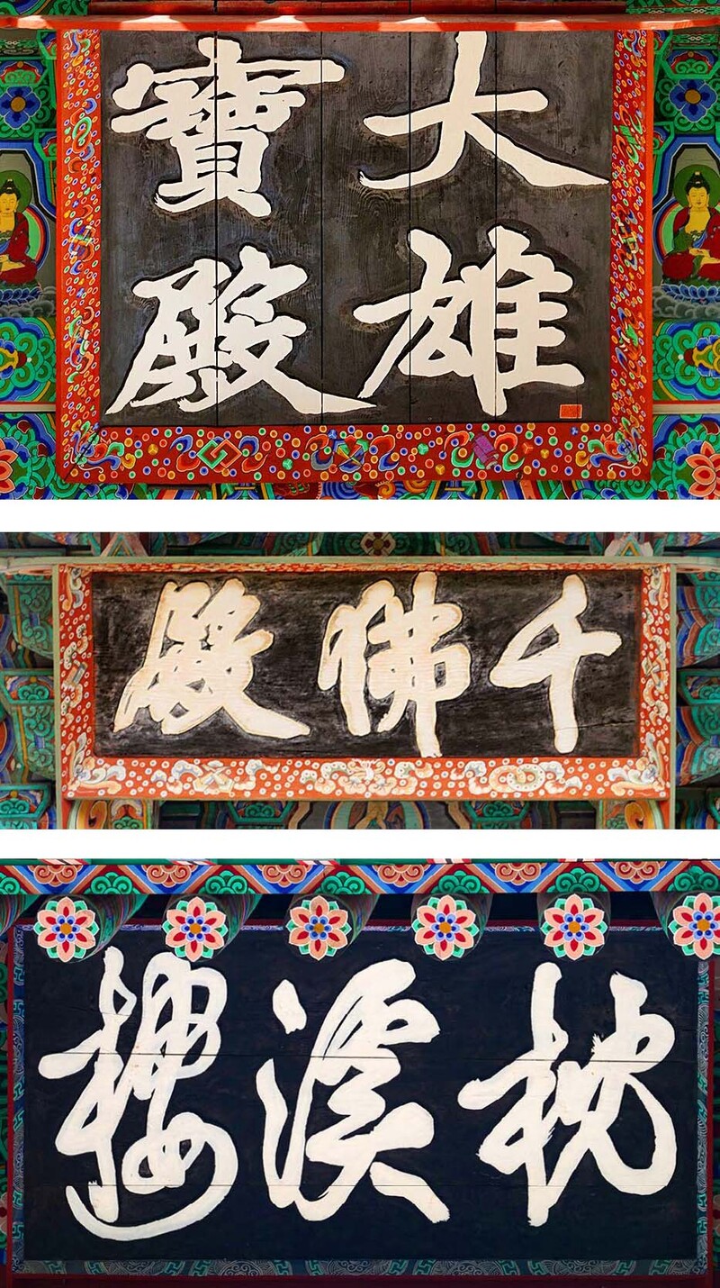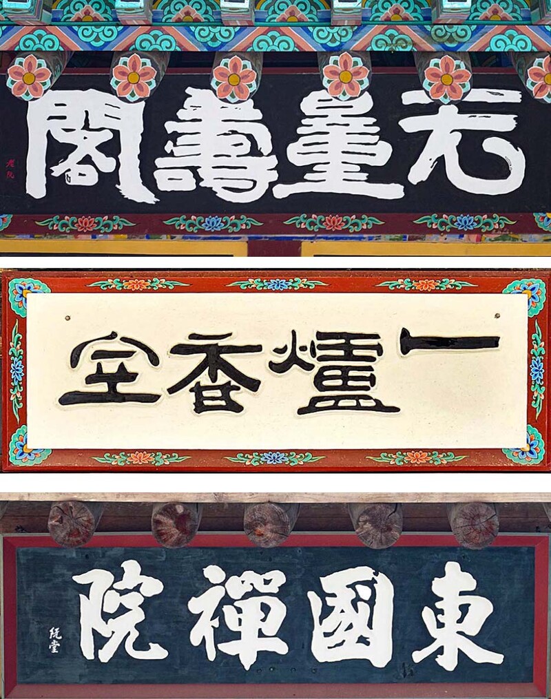 Modern calligraphers such as Gangam Songsungyong, Yeocho Kim Eung-hyun, and Unam Joyongmin have their signature plaques displayed at Daeheungsa, including Yeonhamun, Iljiam, and Iljumun.