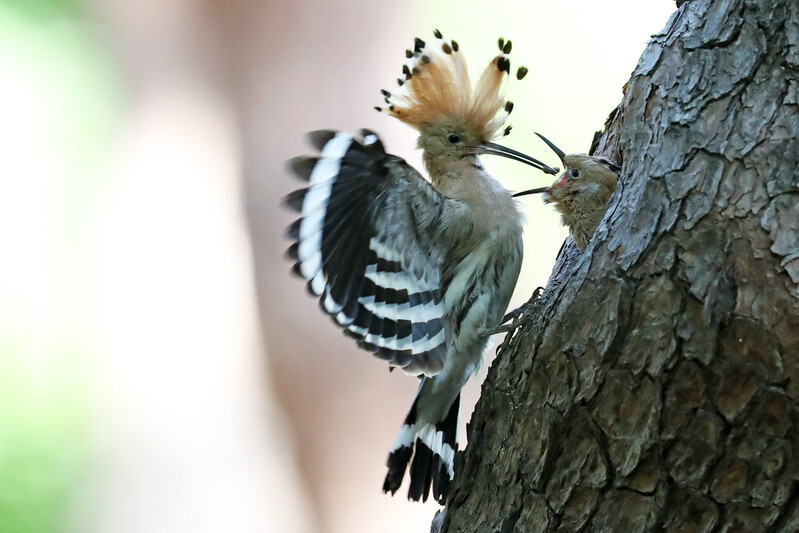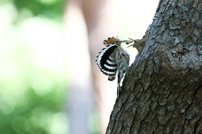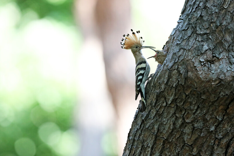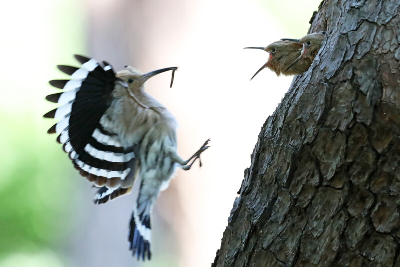 A hoopoe carries prey to its chick in the forest of Hwangseong Park in downtown Gyeongju on the 17th. (Yonhap)