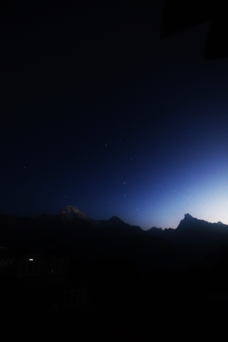 My previous envision of the star-cascading Himalayan night was not happening. Not many stars were visible to the naked eye, and the interference of light was especially strong. (When I later checked the photos with longer exposure, there were many more stars, but even those weren't clear due to interference.)