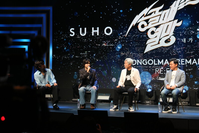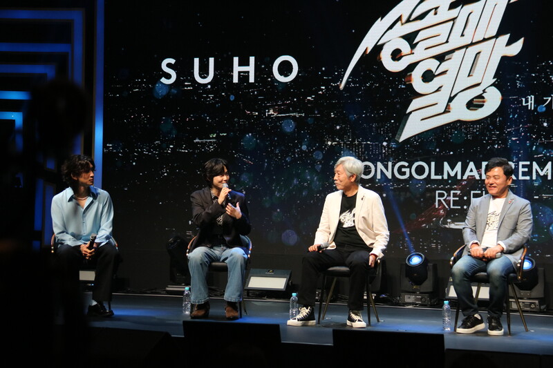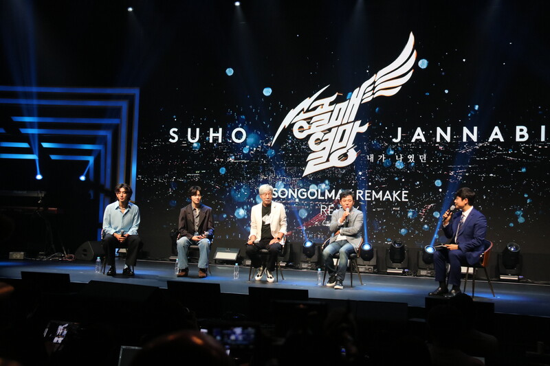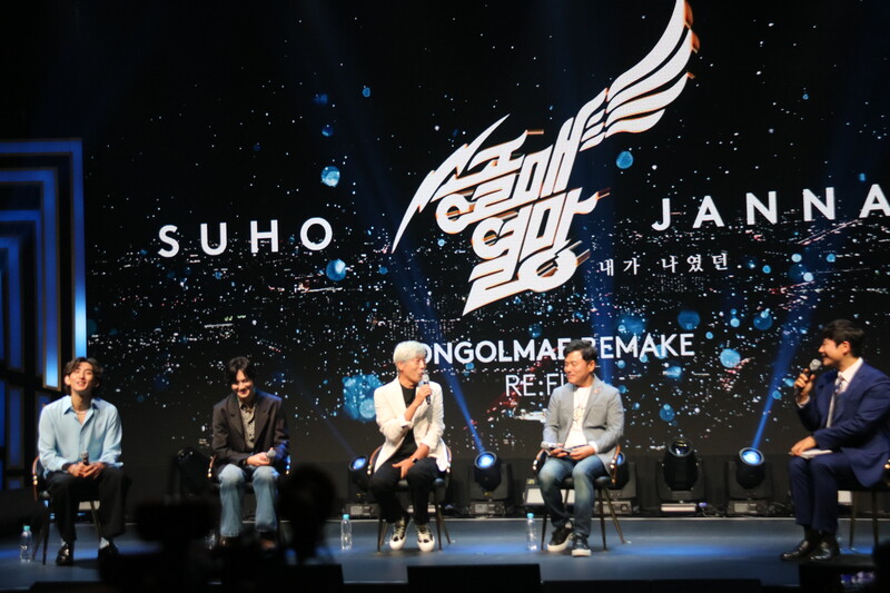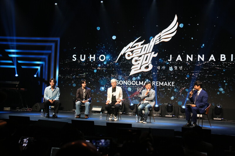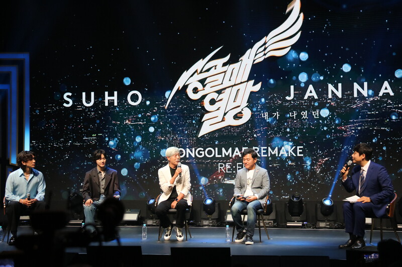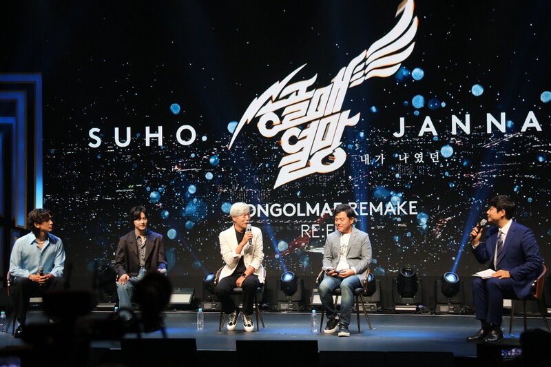 These are some of the photos of Exo's Suho, Songolmae's Bae Cheol-soo and Koo Chang-mo and Jannabi's Choi Jung Hoon sharing their thoughts on the remake project during the press conference.