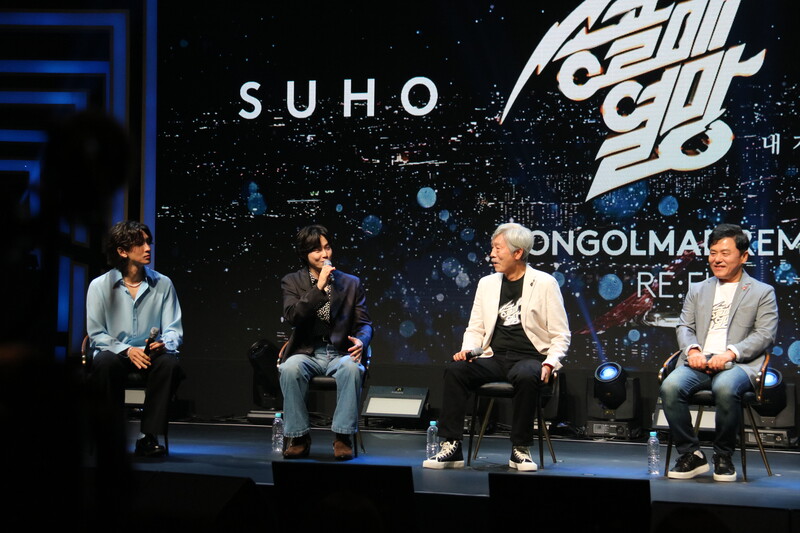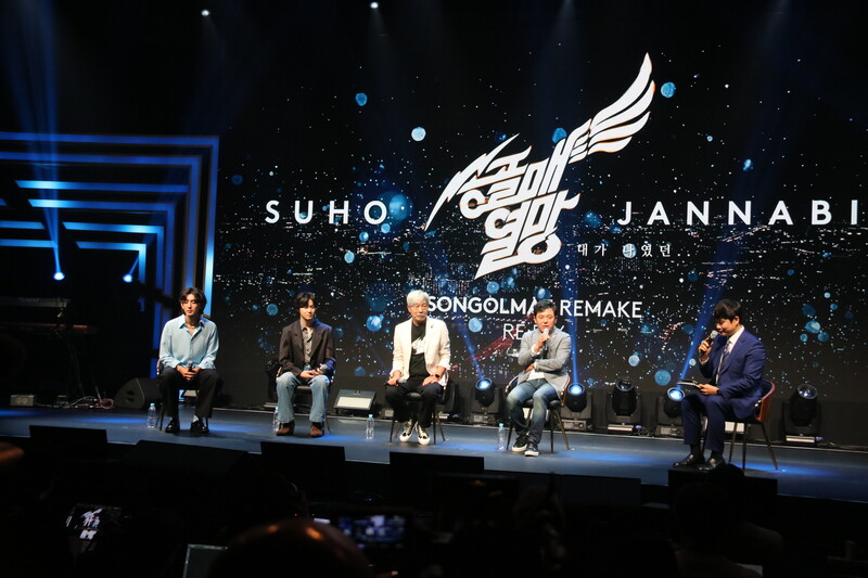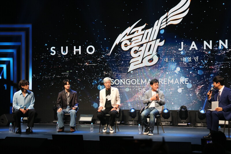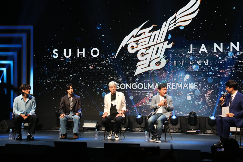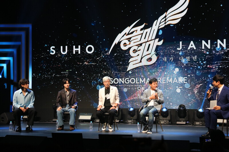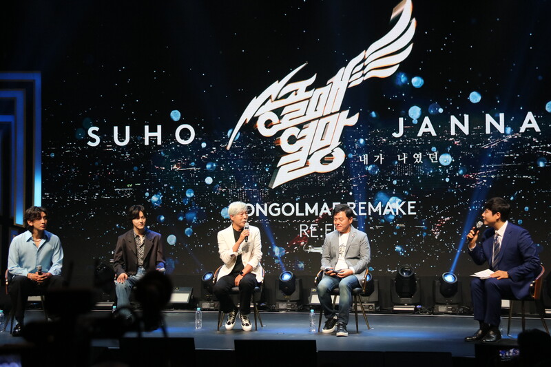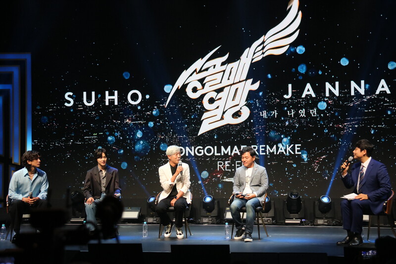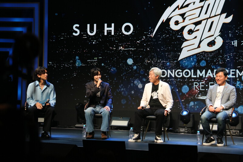 These are some of the photos of Exo's Suho, Songolmae's Bae Cheol-soo and Koo Chang-mo and Jannabi's Choi Jung Hoon sharing their thoughts on the remake project during the press conference.
