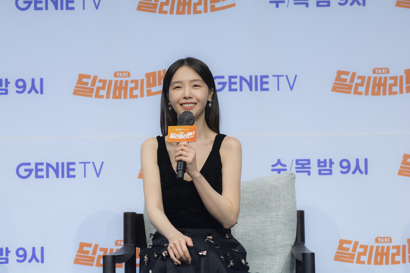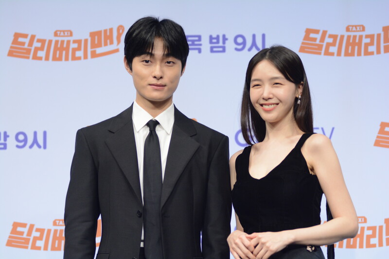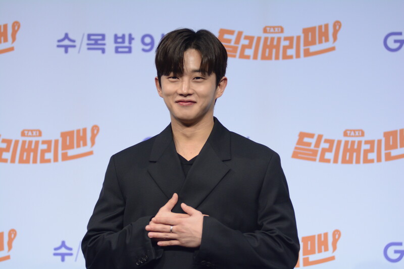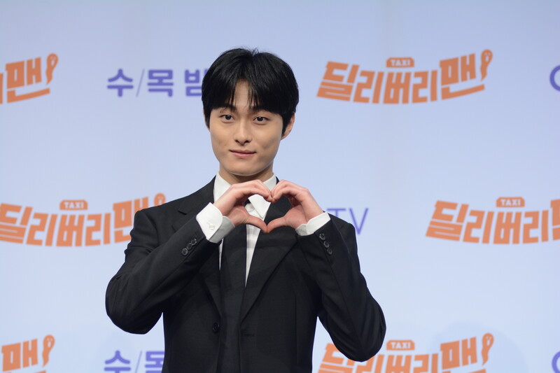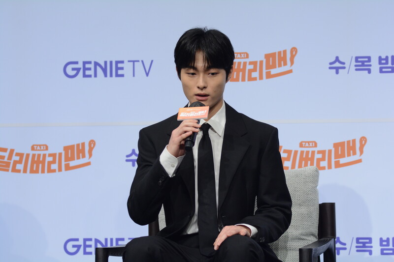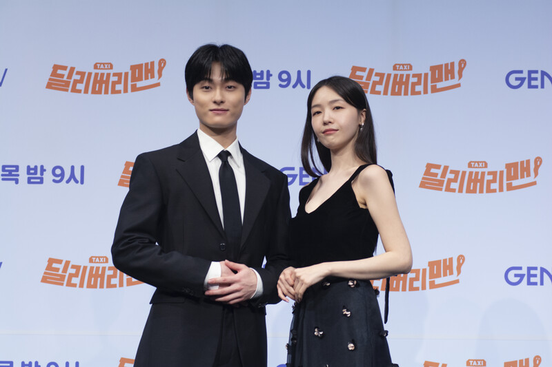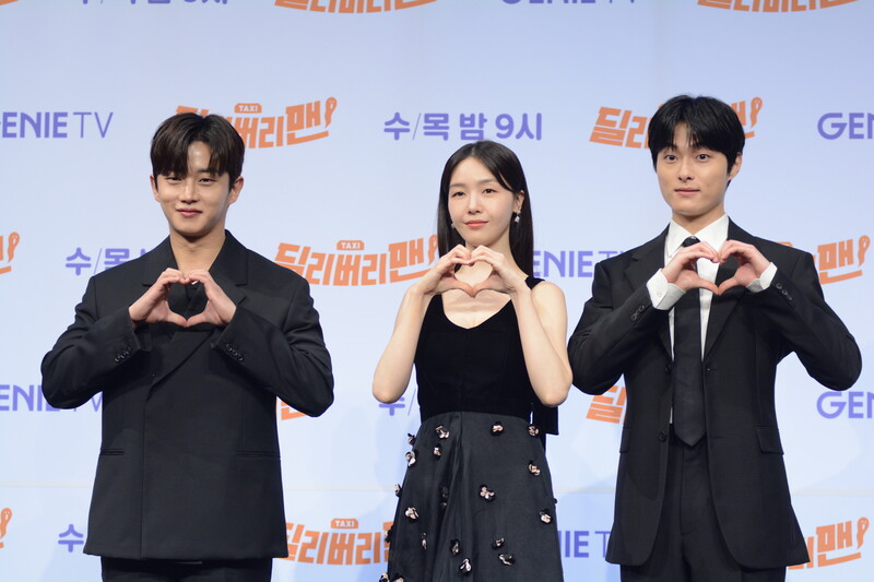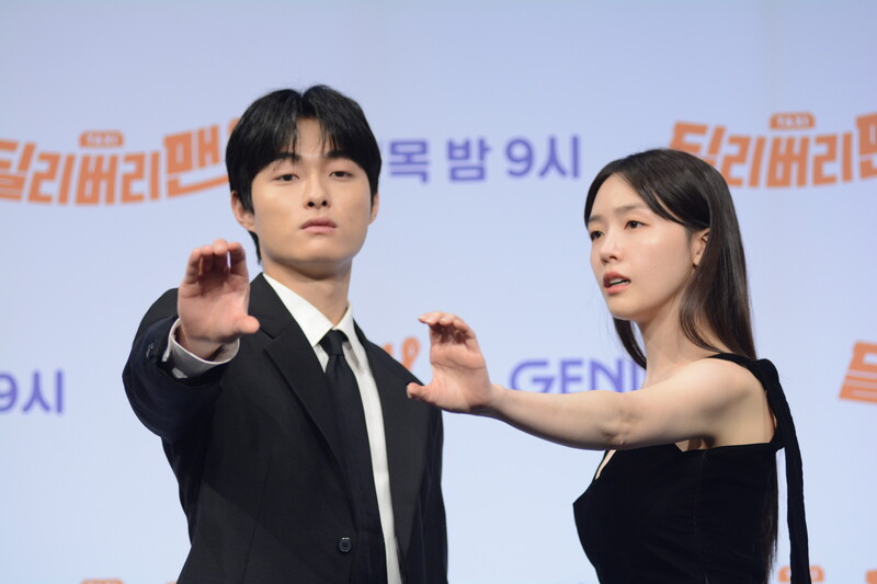 These photos taken during the press conference of the upcoming South Korean drama series "Delivery Man" provided by Genie TV show actress Bang Min-ah, Kim Min-seok, and Yoon Chan-young posing for their individual, group photos while answering questions throughout the session.