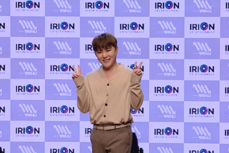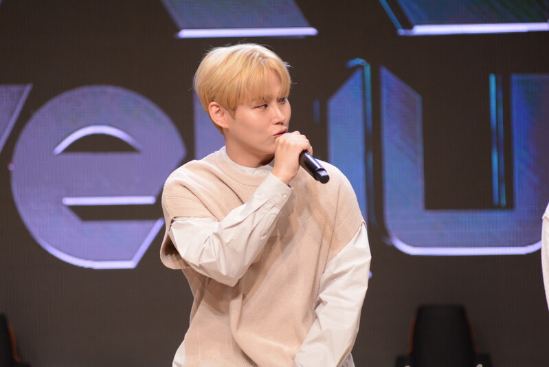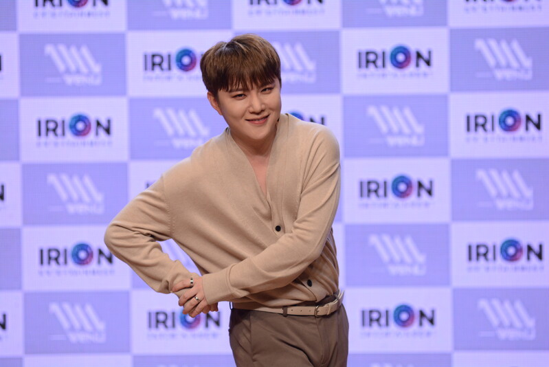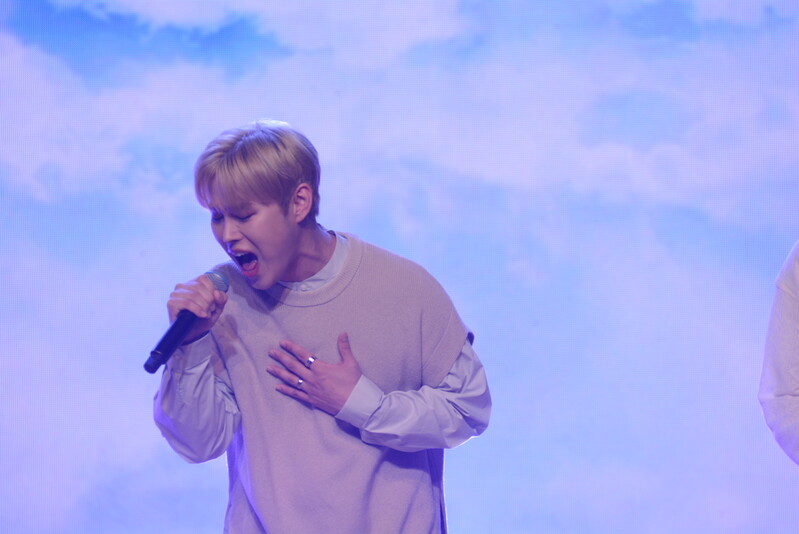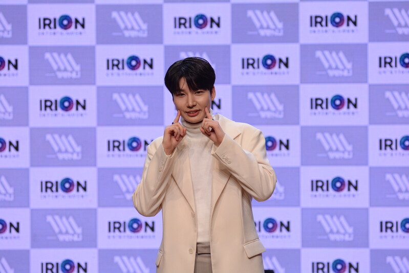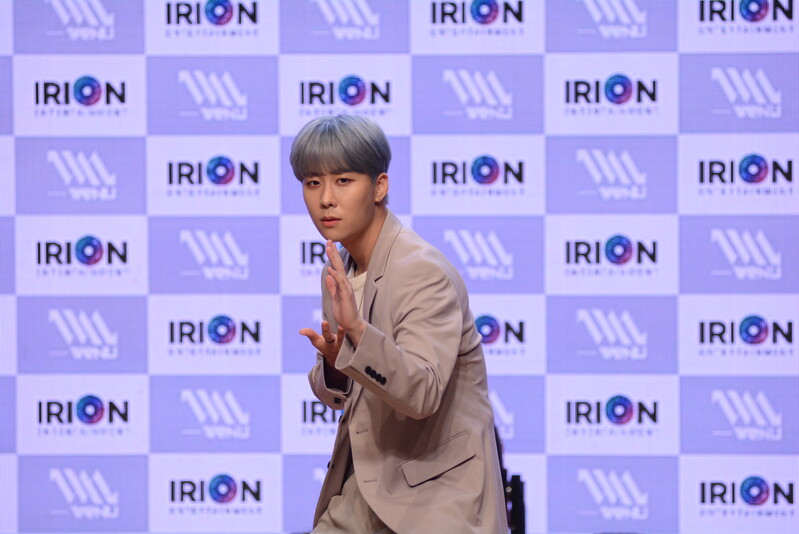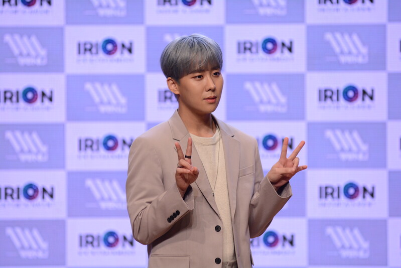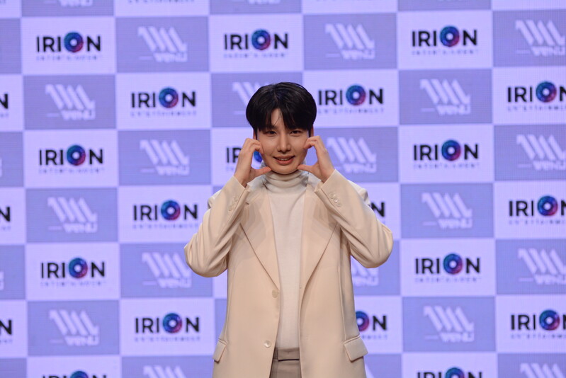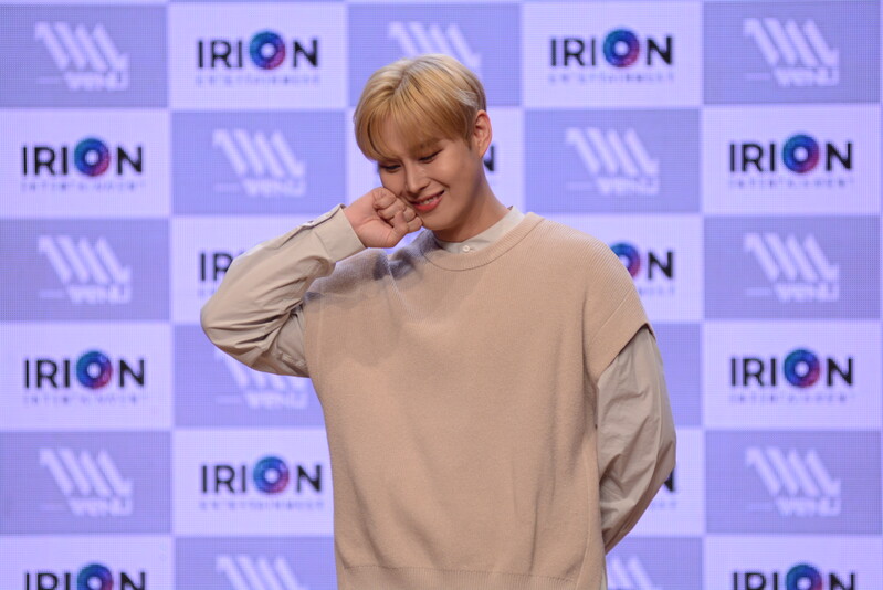 These photos, taken during the debut media showcase of K-pop boy group WeNU show members posing for their individual photos and perform their title track "Haru Haru" from debut single album "Haru Haru."