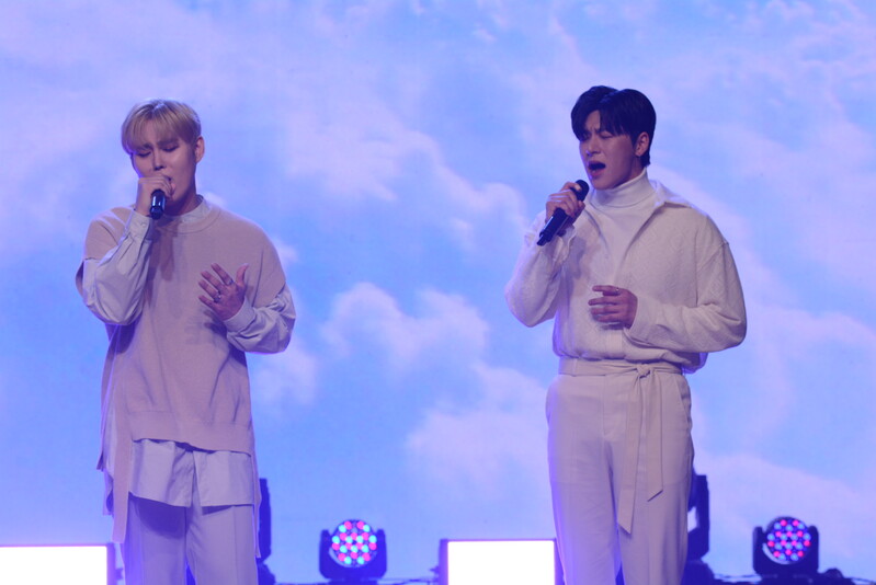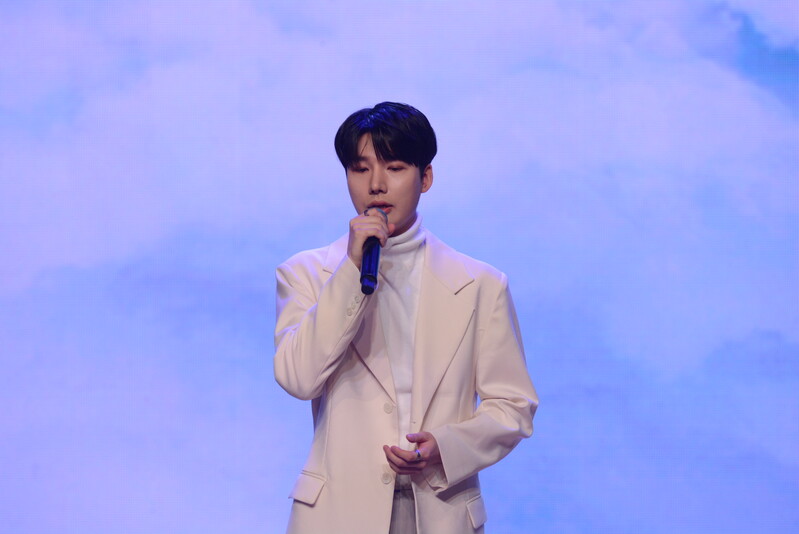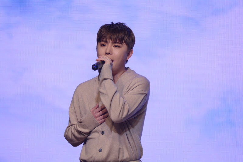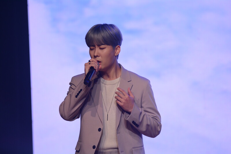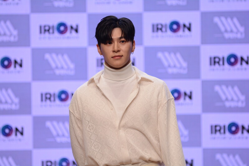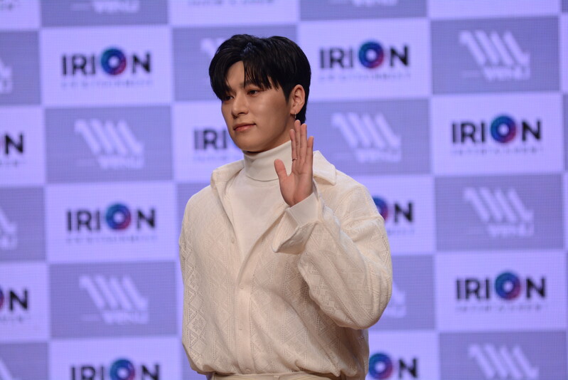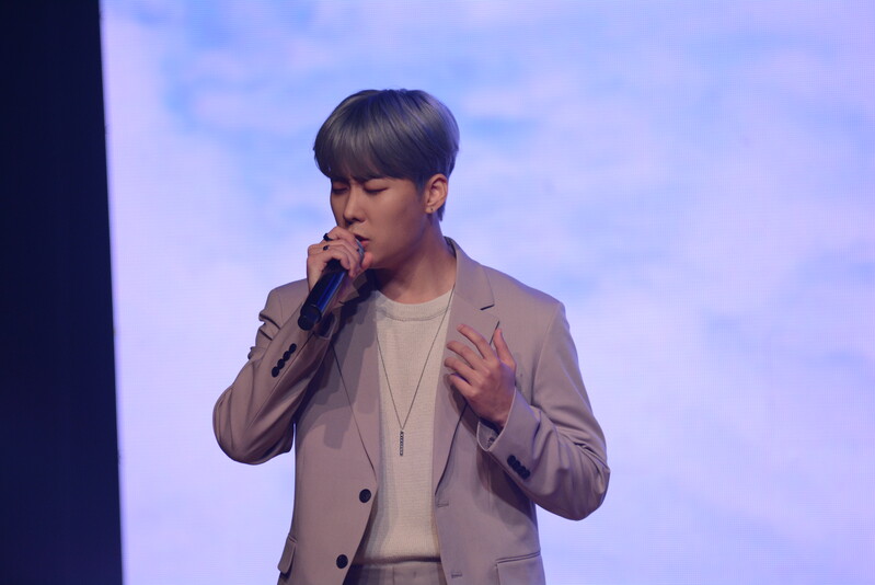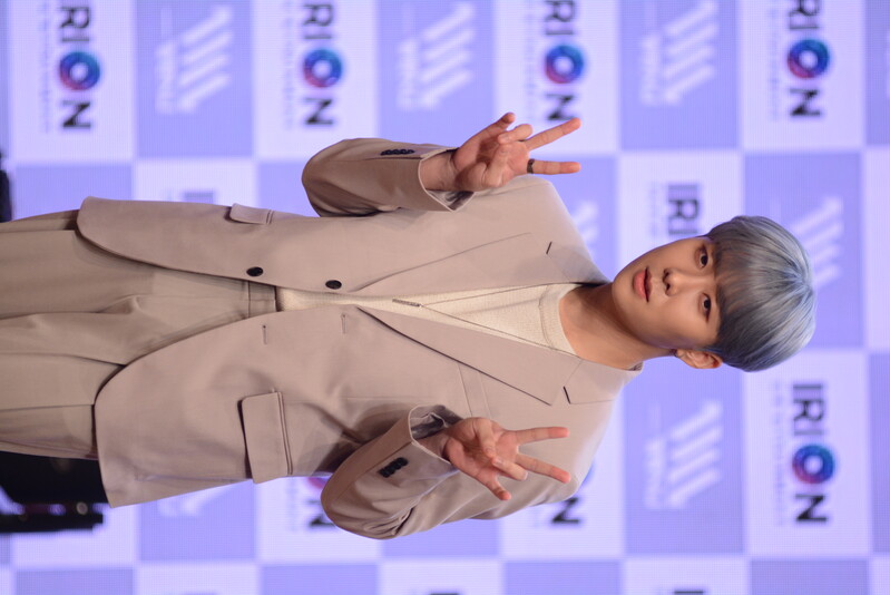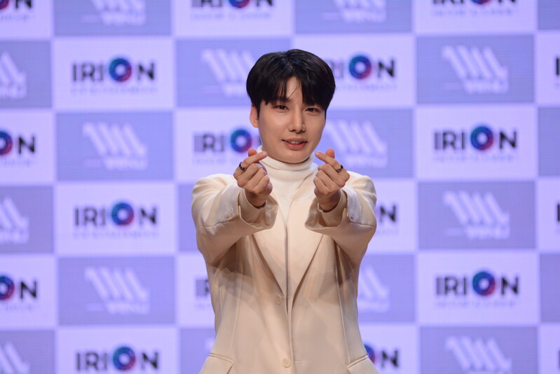 These photos, taken during the debut media showcase of K-pop boy group WeNU show members posing for their individual photos and perform their title track "Haru Haru" from debut single album "Haru Haru."