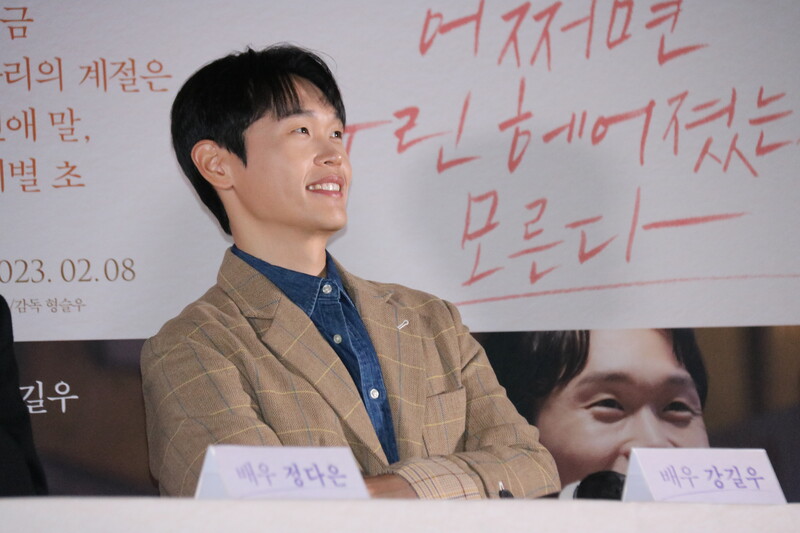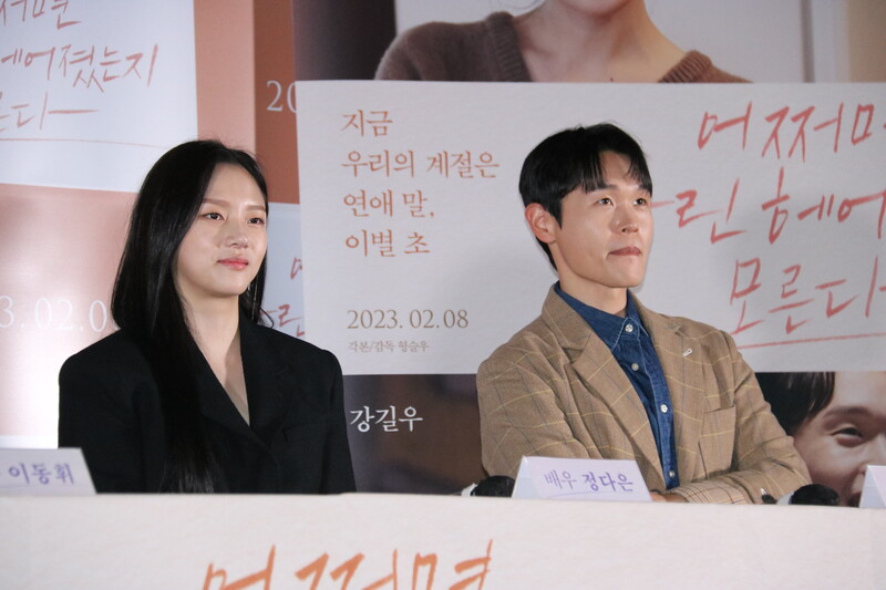 These photos show Lee Dong-hwi, Kang Gilwoo, Jung Daeun from the press conference of the upcoming movie "Someone You Loved." The movie will be released on Feb 8.