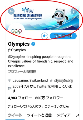 (도쿄=연합뉴스) 박세진 특파원 = 도쿄올림픽 조직위원장의 '여성 비하' 발언 여파로 올림픽 개최의 불확실성이 한층 커졌다는 지적이 이는 가운데 국제올림픽위원회(IOC)가 운영하는 공식 트위터 문패 사진(헤더)이 2022 베이징동계올림픽 사진으로 바뀌어 일본에서 논란이 됐다.