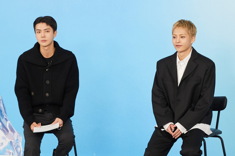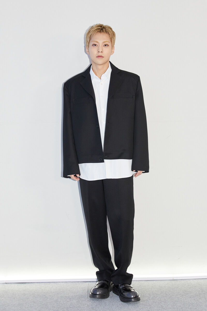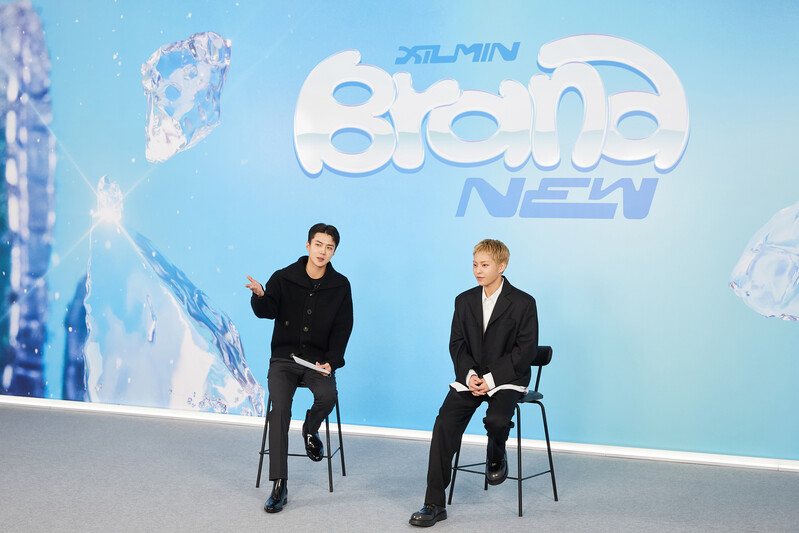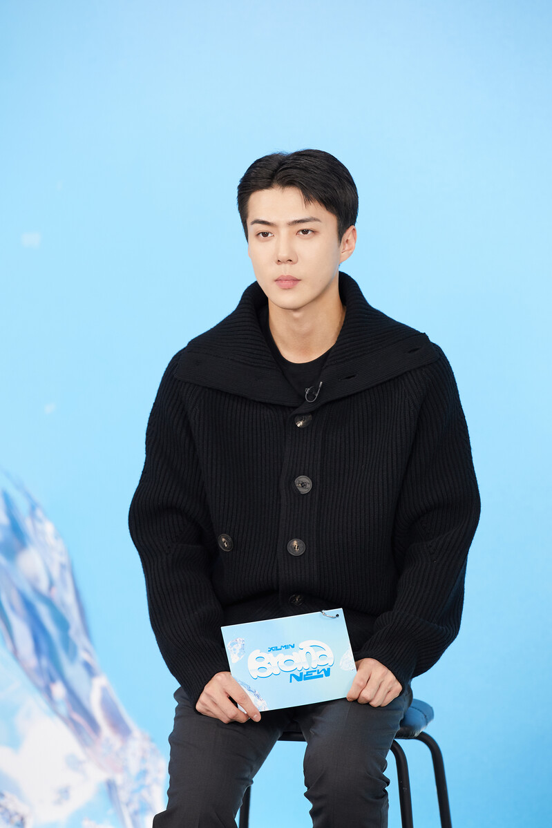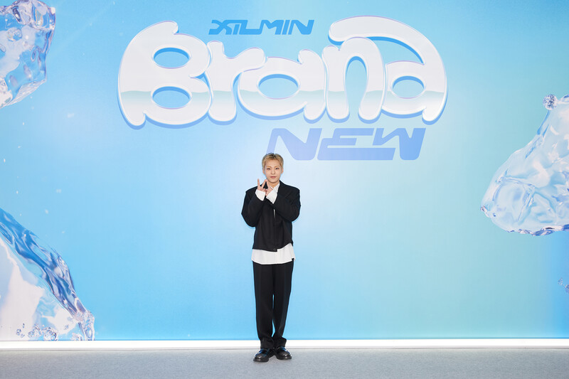These photos, provided by SM Entertainment, show exo member xiumin during his online press conference for his solo album "Brand New."