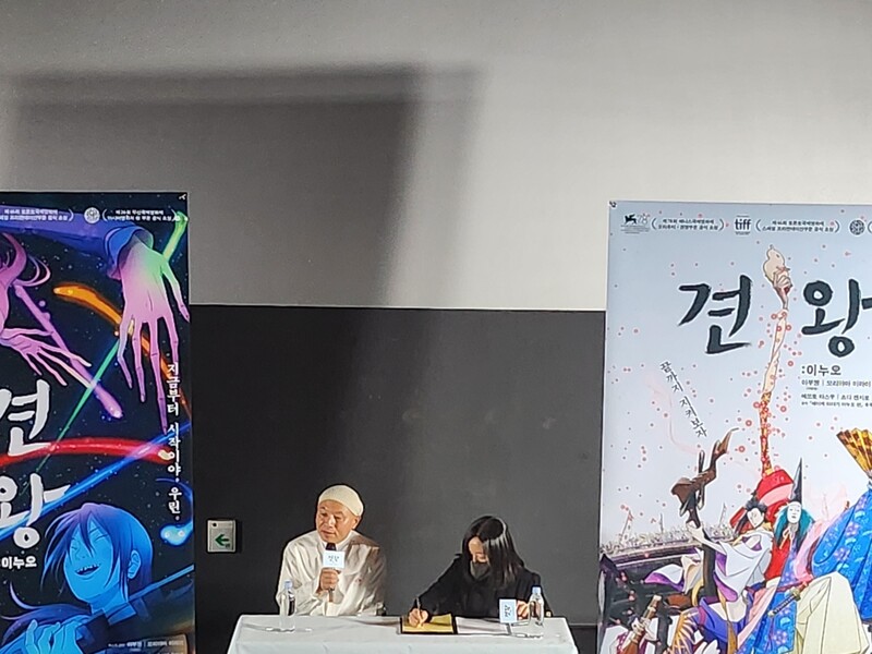 “Due to the era difference some might have hard time understanding the storyline, however I hope the audience will have fun with the people from 600 years ago.” director Yuasa addressed throughout the press conference held after exclusive showing of the musical movie “Inu-Oh” at Lotte Cinema on December 2.