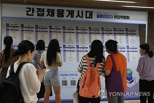 | ▲ Female immigrants review employment information at the 2024 Employment Fair for Marriage Migrants held at Seoul Family Plaza in Dongjak-gu, Seoul, on Sept. 5, 2024. (Yonhap) |