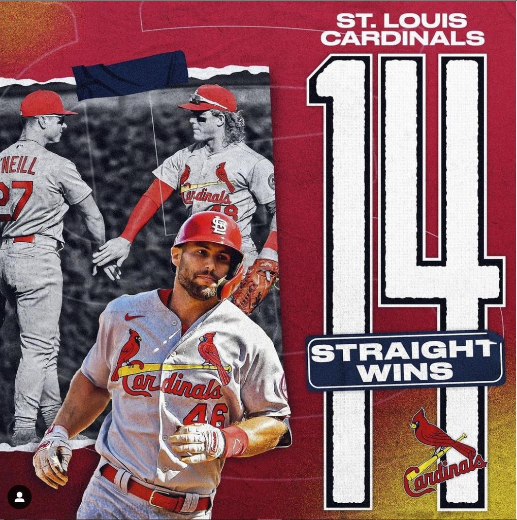 | ▲ 세인트루이스 파죽의 14연승 [MLB닷컴 인스타그램 캡처. 재판매 및 DB 금지] |