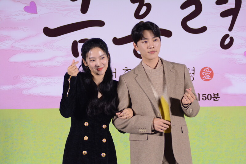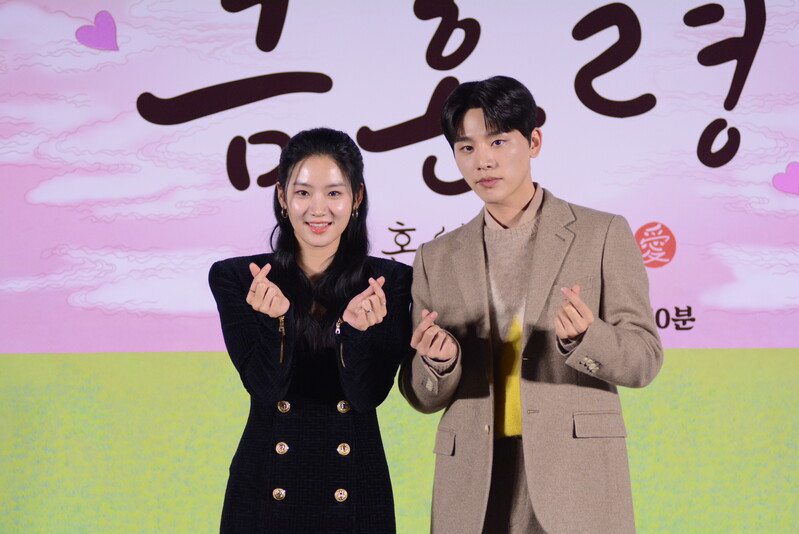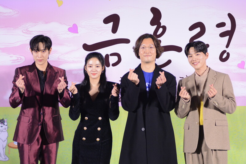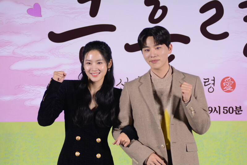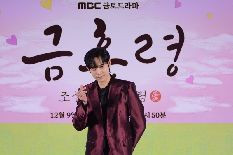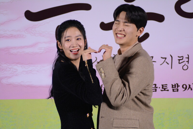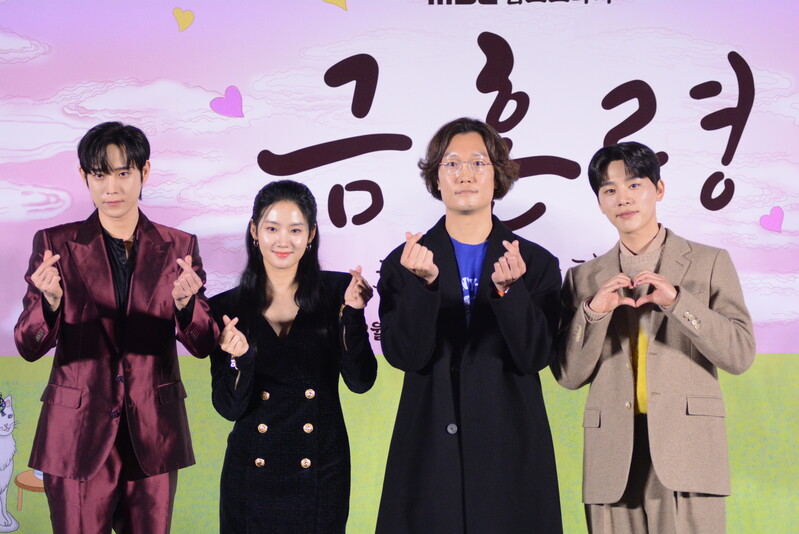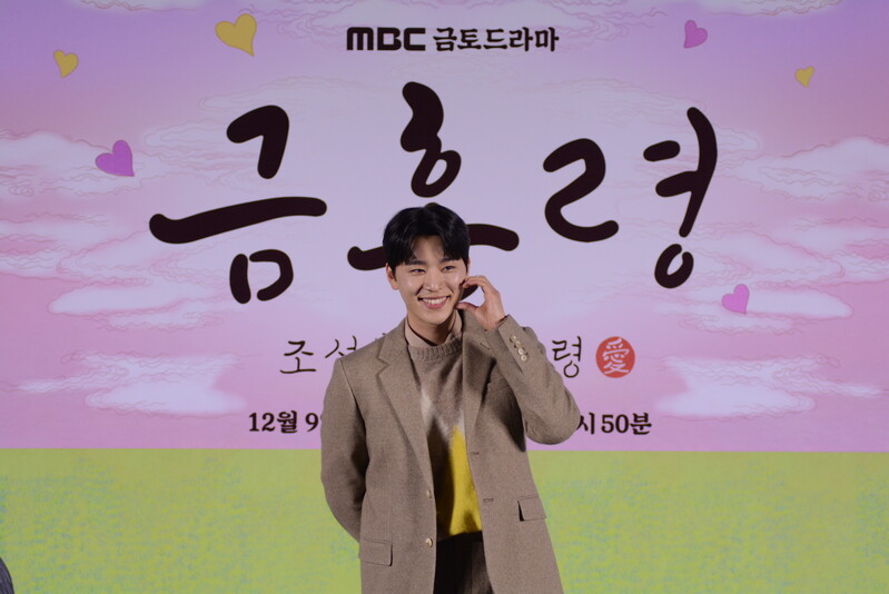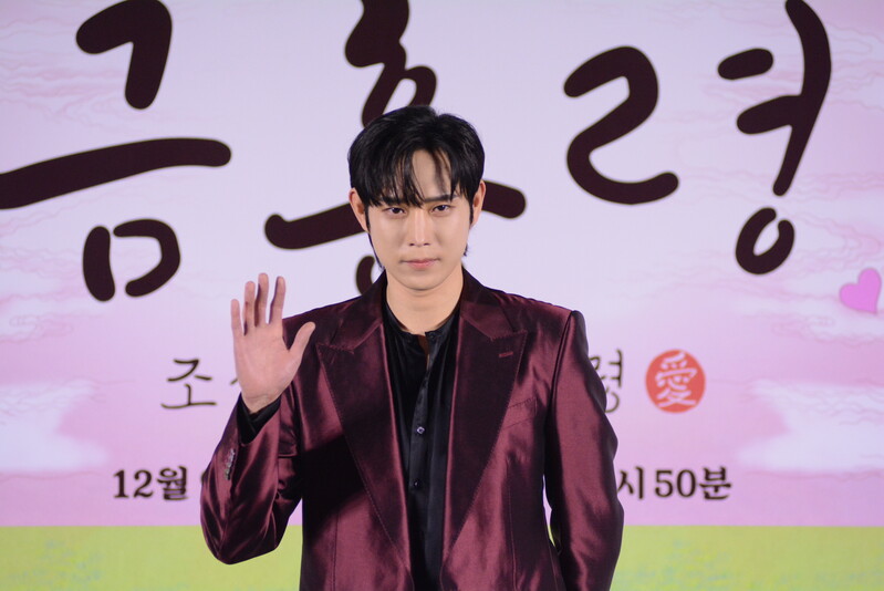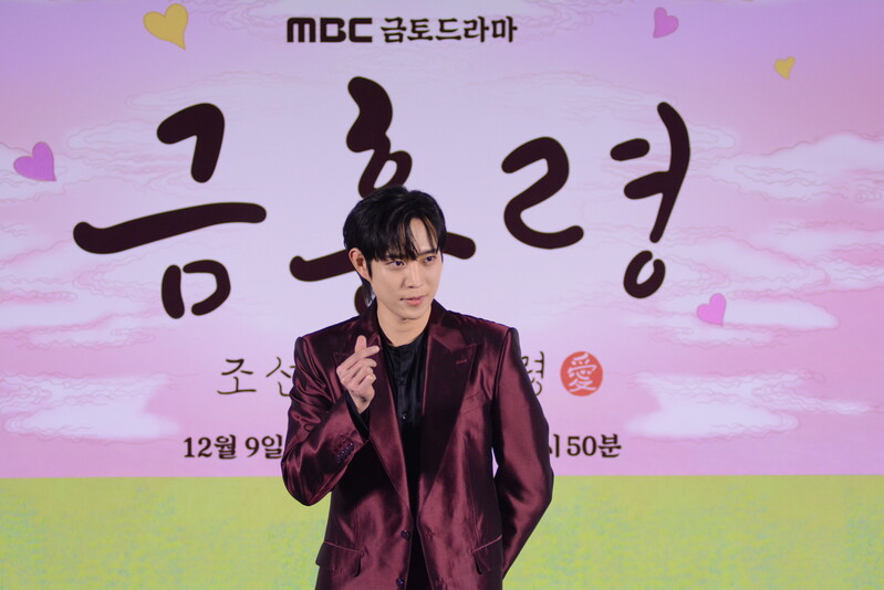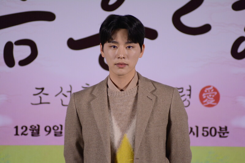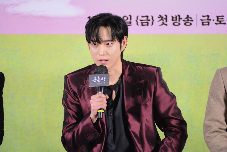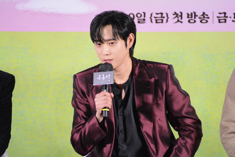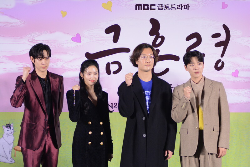 These photos taken during the press conference of MBC's upcoming drama series "The Forbidden Marriage" featuring actor Kim Young-dae, Kim Woo-seok and actress Park Ju-hyun show cast members posing for photos and answering to questions.