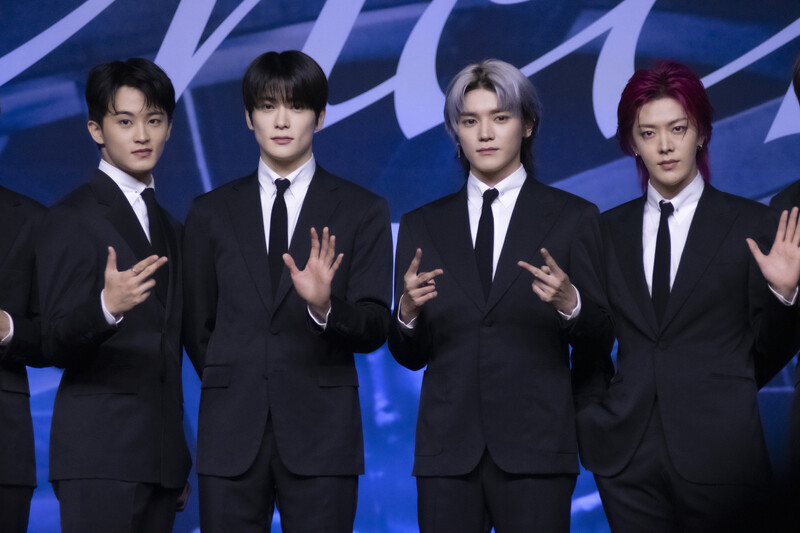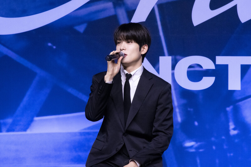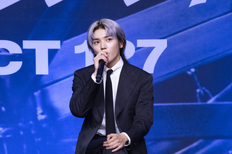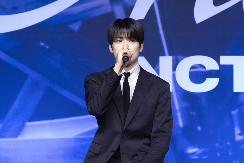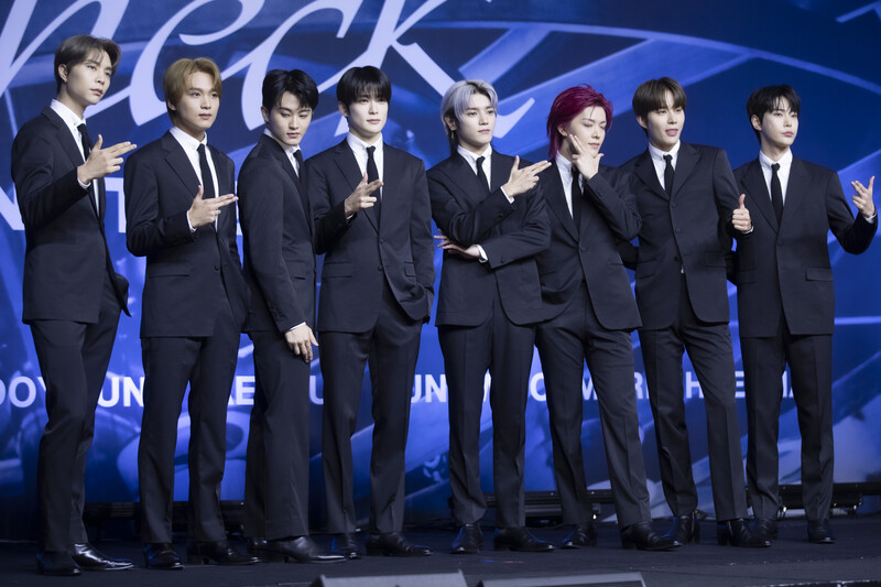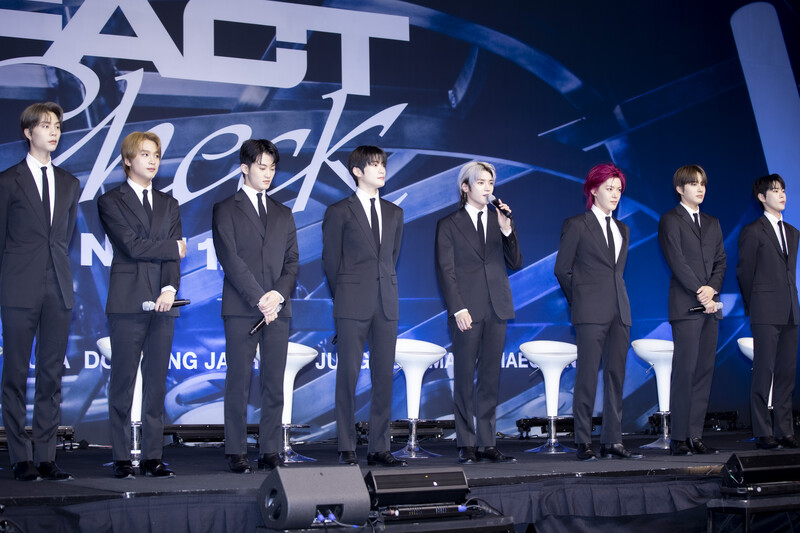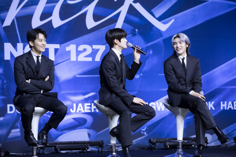 These photos taken during the press conference of K-pop boy group NCT 127's 5th full length album 'Fact Check' show members posing for their individual photos and answering to questions.