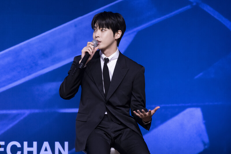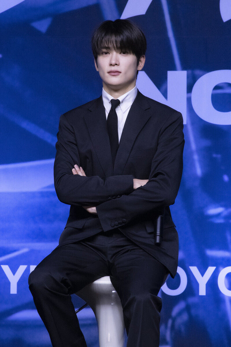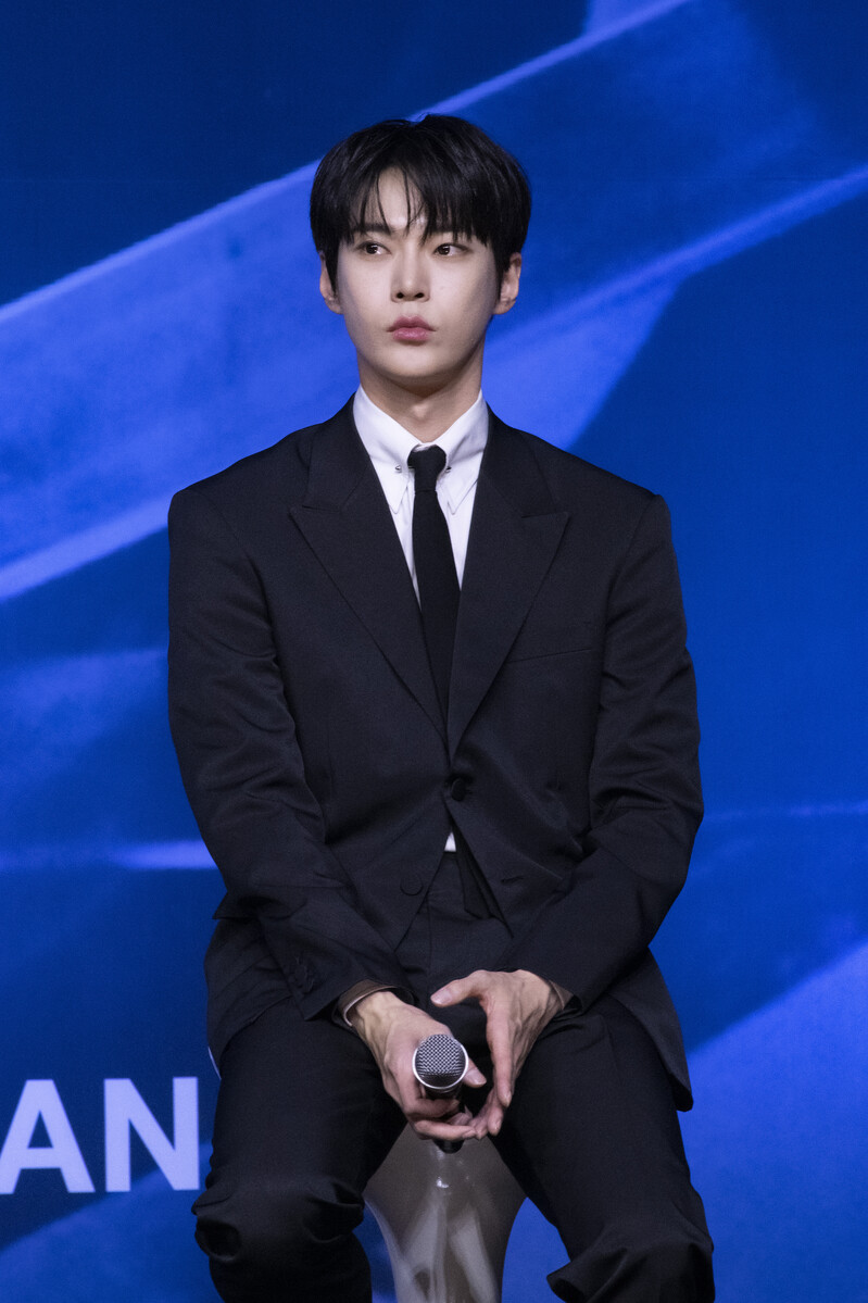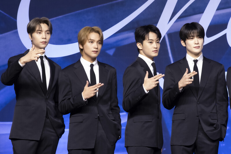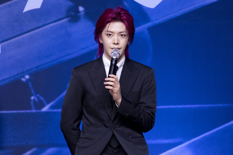 These photos taken during the press conference of K-pop boy group NCT 127's 5th full length album 'Fact Check' show members posing for their individual photos and answering to questions.