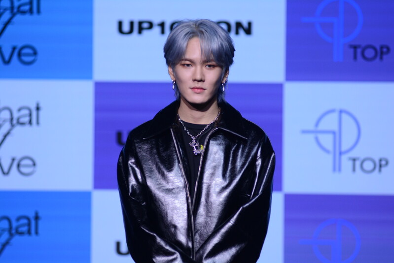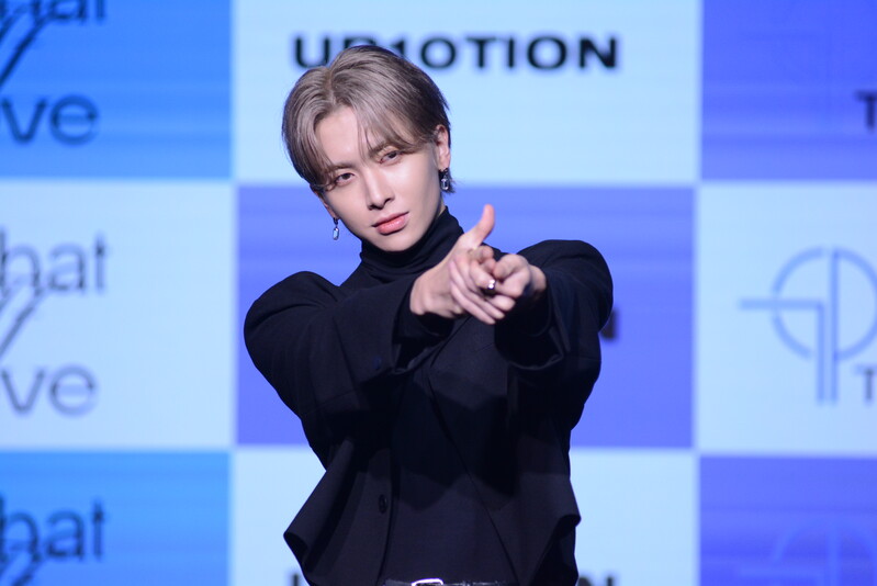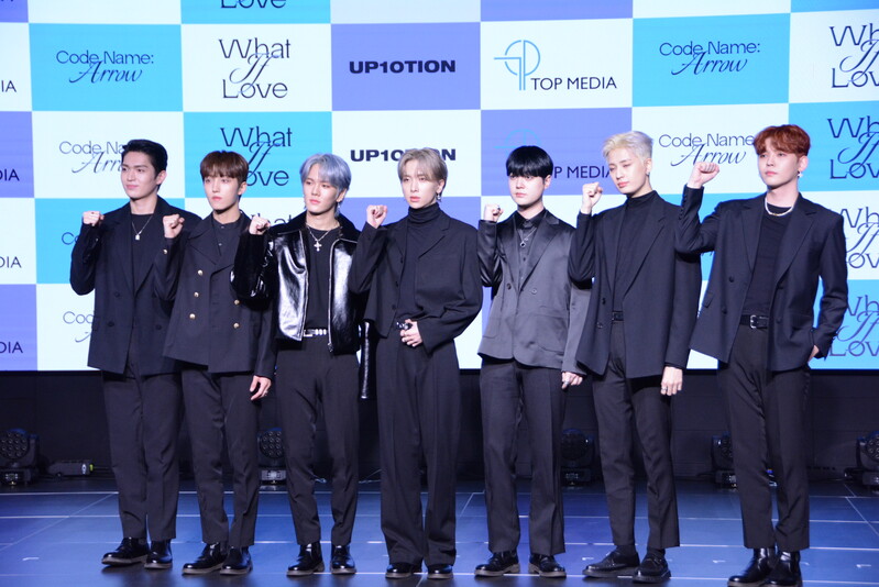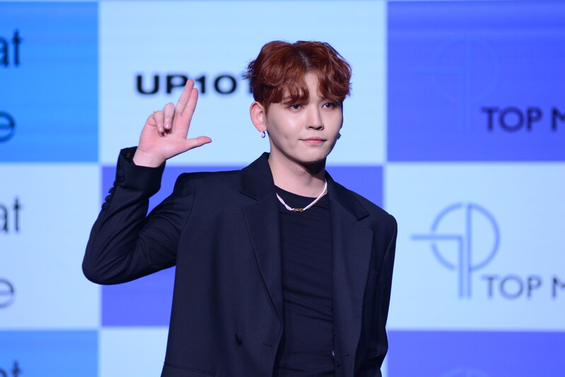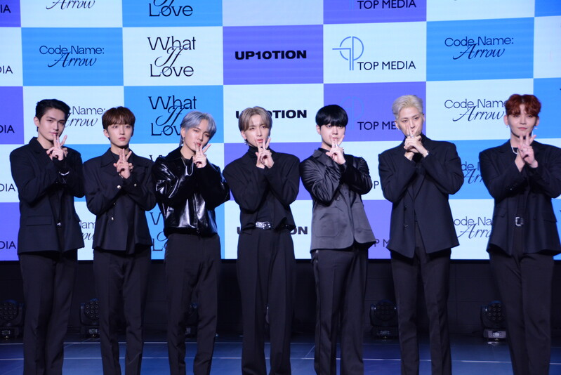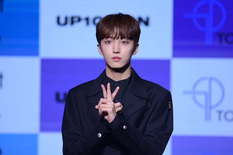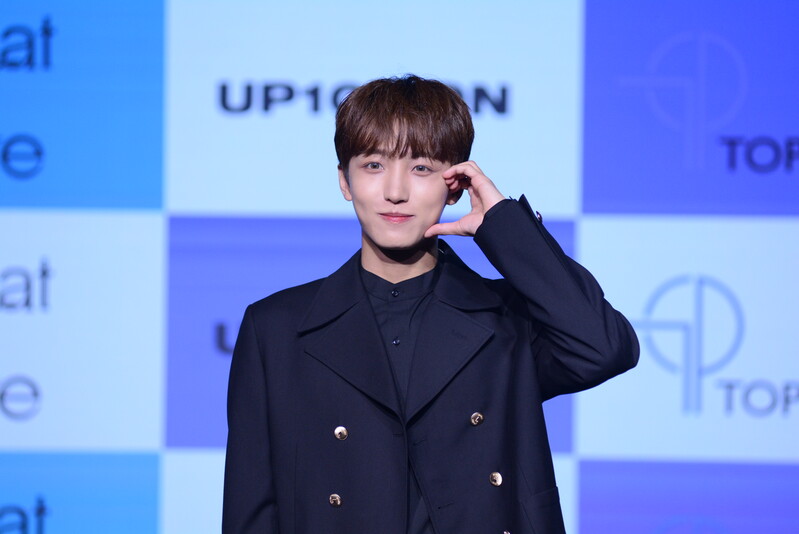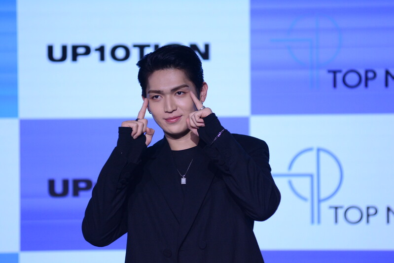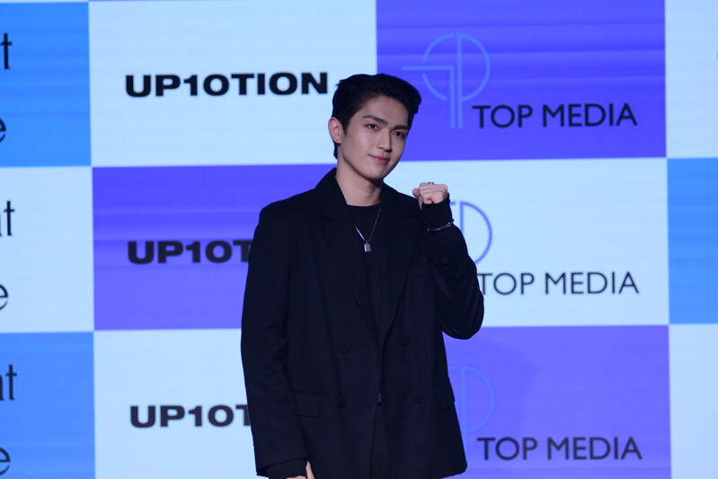 These photos taken during the media showcase of K-pop boy group UP10TION's upcoming 11th mini album shows individual and group photos of UP10TION members.