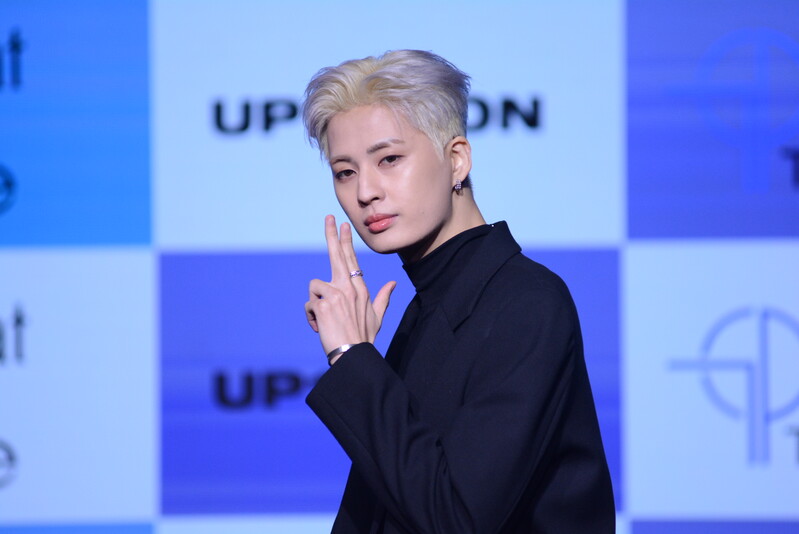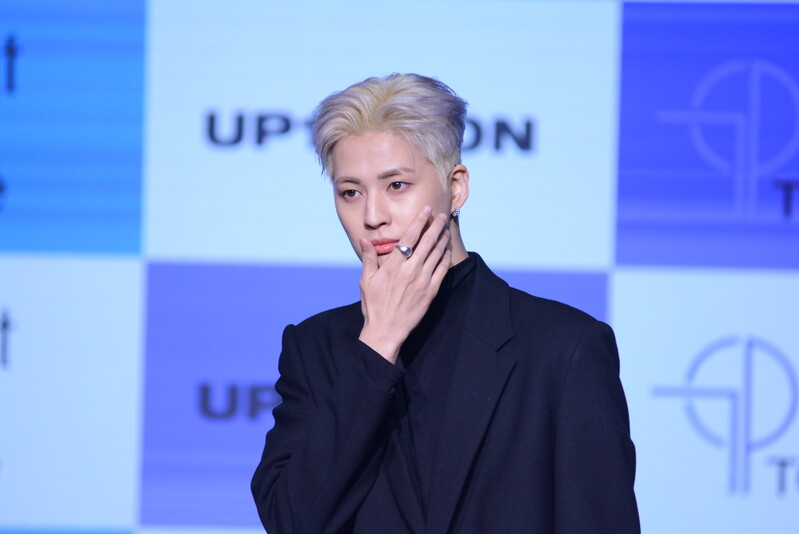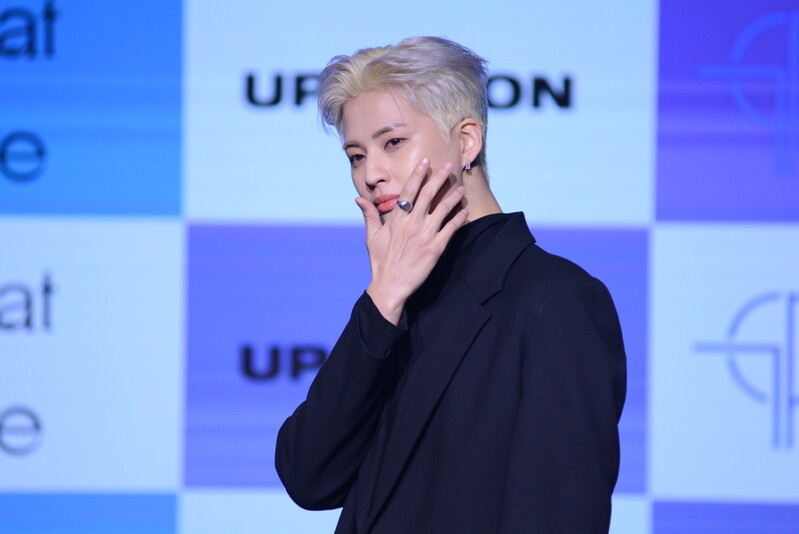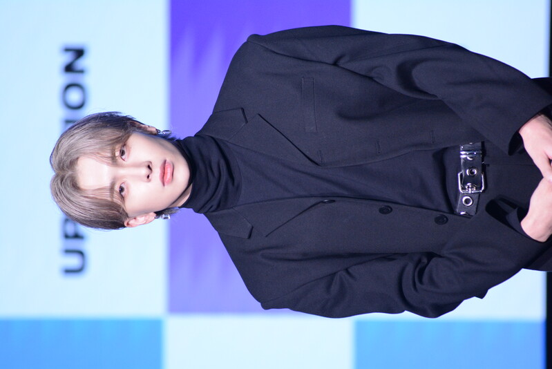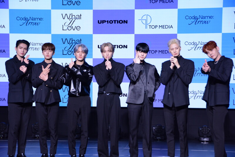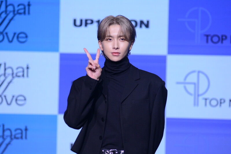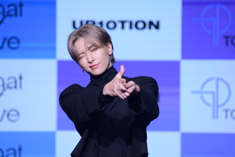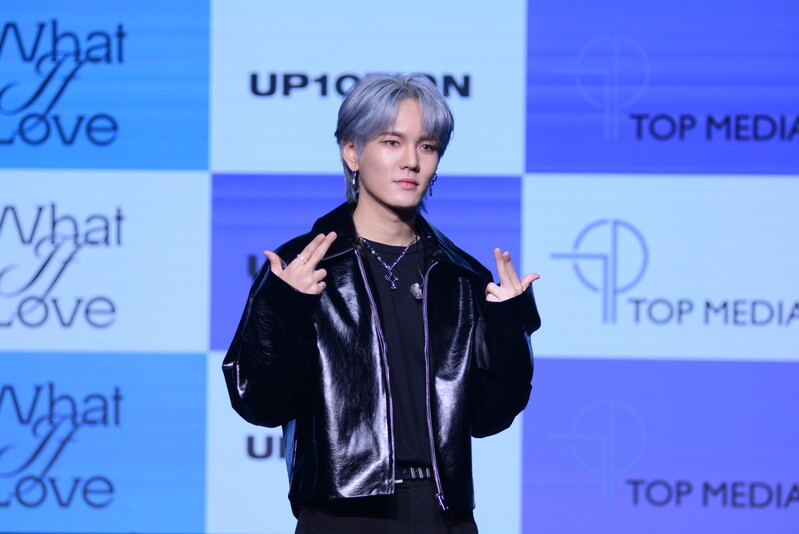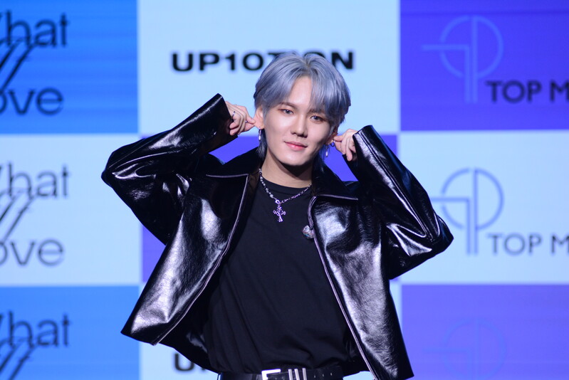 These photos taken during the media showcase of K-pop boy group UP10TION's upcoming 11th mini album shows individual and group photos of UP10TION members.