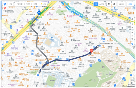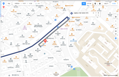 from kakaomap, shows how to get to the cafe GOMZAK from Hongik