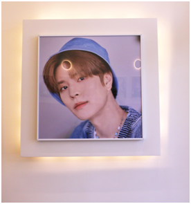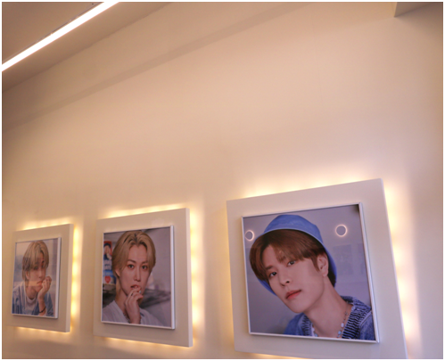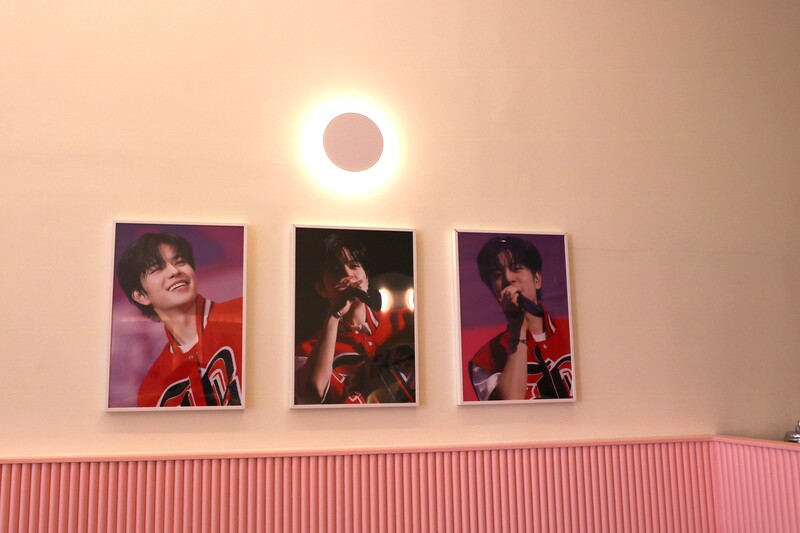 into the café, I could see the individual photos of Han, Felix and Seung Min. When