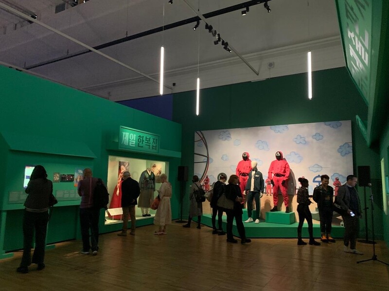 Within the drama and Movie section of the exhibition is decorated to look like an old town of South Korea, also figures of “Squid Games” are placed to look like they are guarding the place.