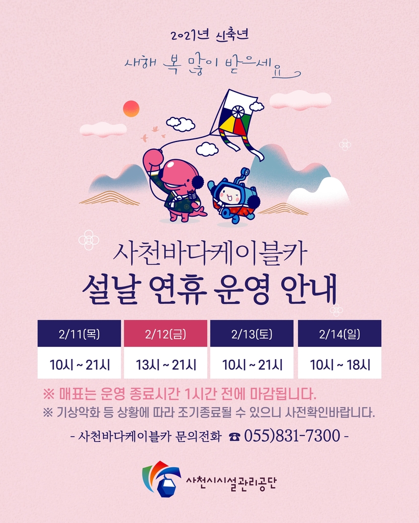 | ▲ 사천바다케이블카 설날 운영 안내 포스터 [사천시시설관리공단 제공. 재판매 및 DB 금지] |