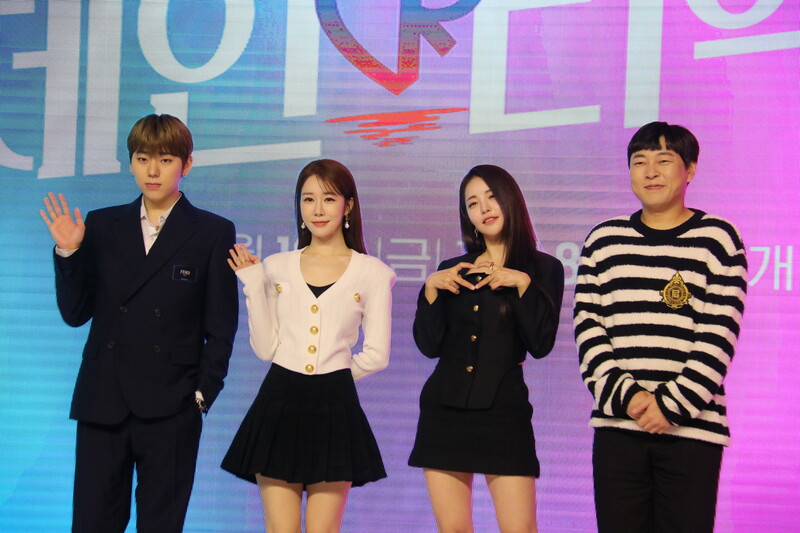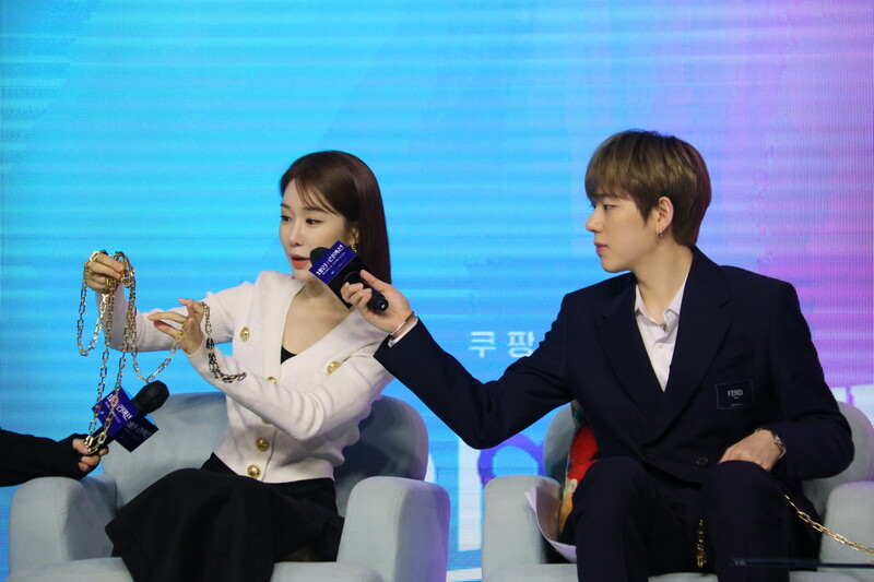 These photos show MCs during the press conference of Coupang Play's new dating show "Chain Reaction" at Conrad hotel in Seoul on Sept 14.