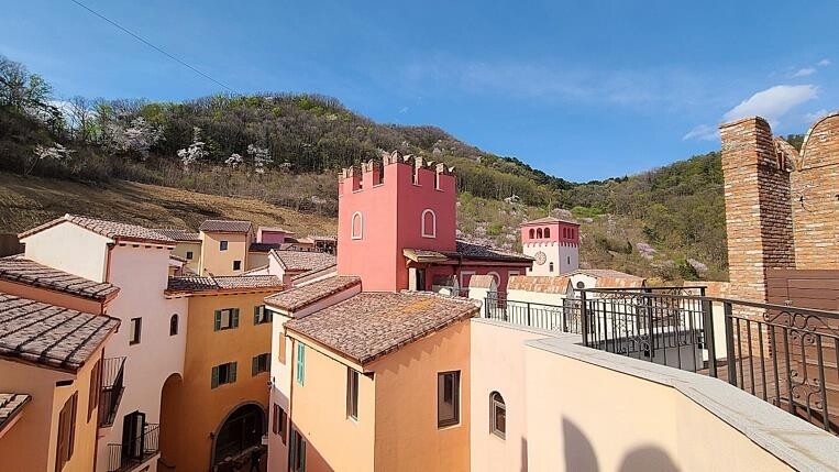Six buildings (labeled A~F) resemble ancient castles from the medieval period will have large and small exhibition halls and theaters within the village.