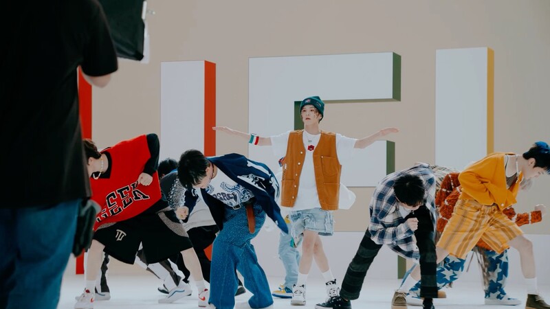 These photos, provided by JYP Entertainment shows, members of K-pop boy group TREASURE participating at a music video shoot of their title track "Hello" which will be included within their second mini album "Second Step: Chapter Two."