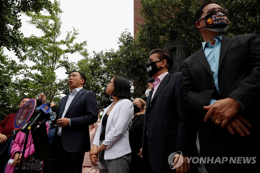 | ▲ 뉴욕시 맨해튼 차이나타운에서 열린 아시아계 증오범죄 규탄 집회에서 발언하는 앤드루 양 뉴욕시장 후보 [로이터=연합뉴스] |