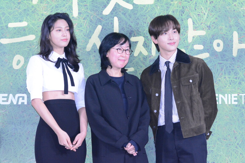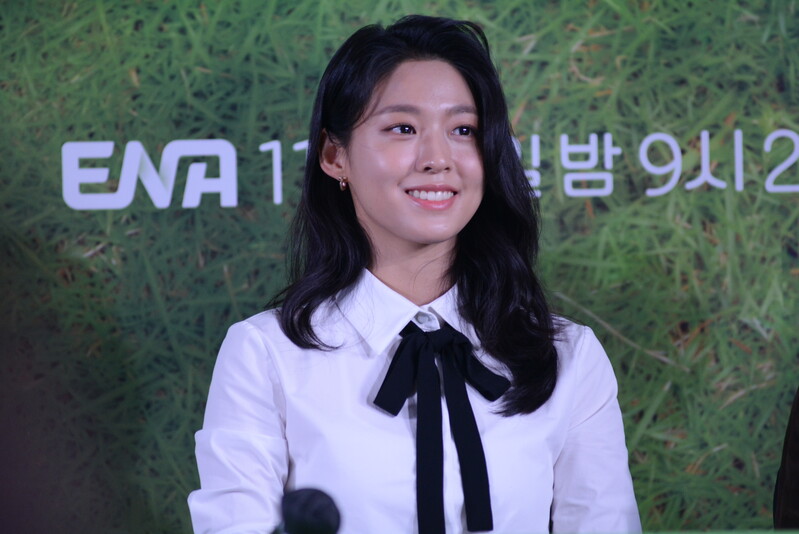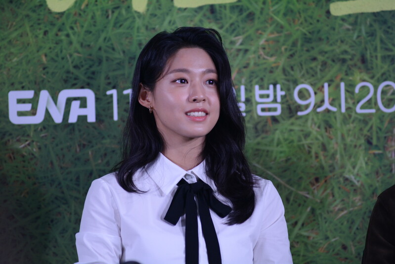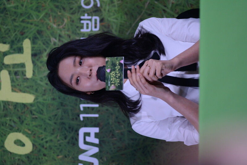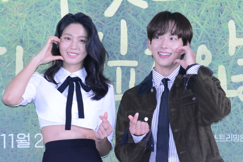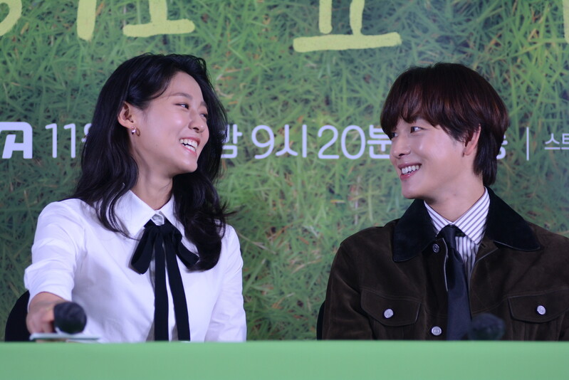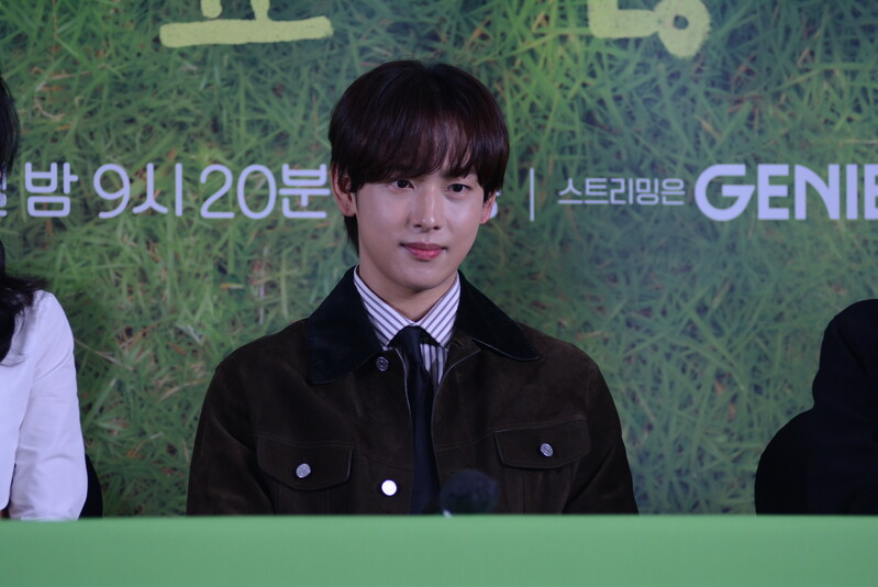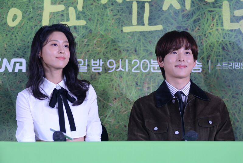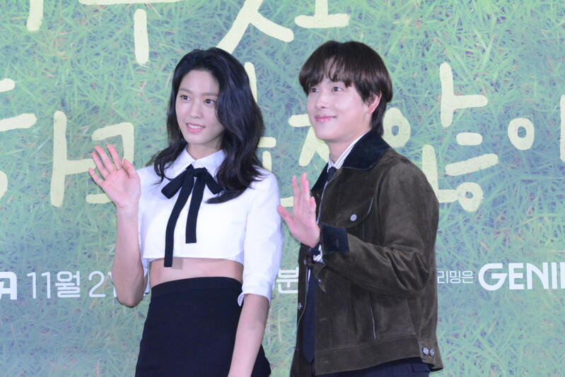 These photos, taken during the press conference of the upcoming drama "Summer Stike" show actress Kim Seol-hyun and actor Im Si-wan posing for their individual and group photos and answering to questions throughout the press conference.