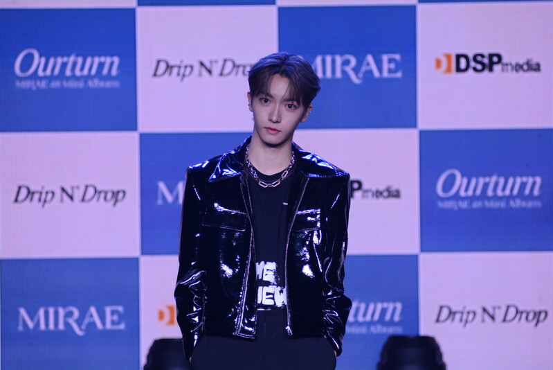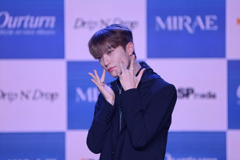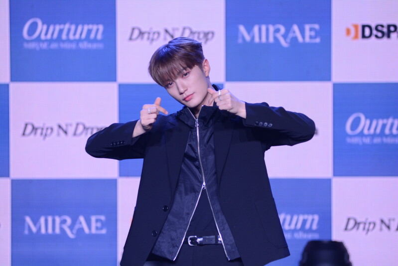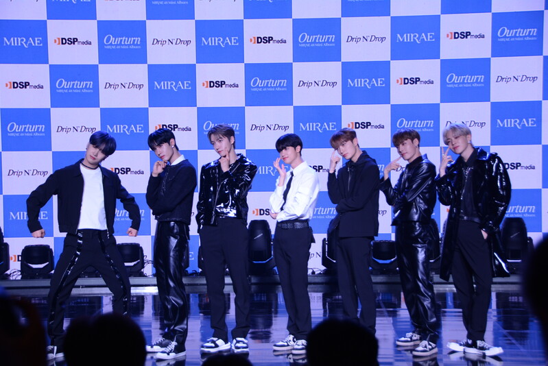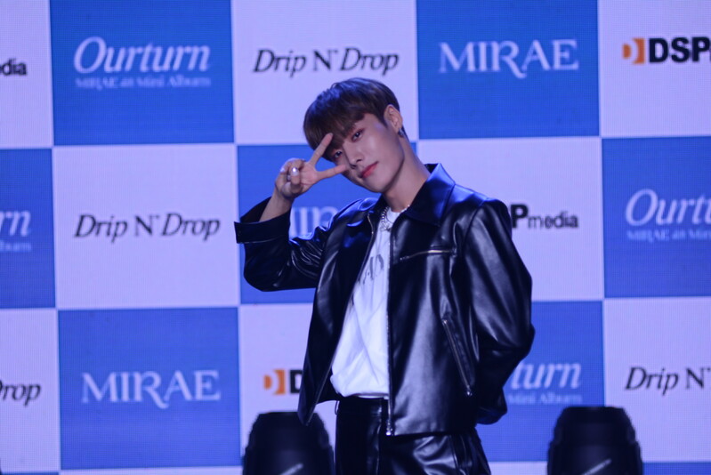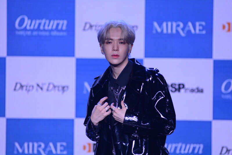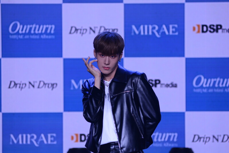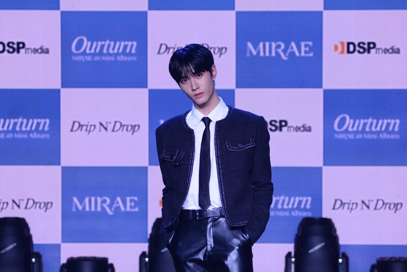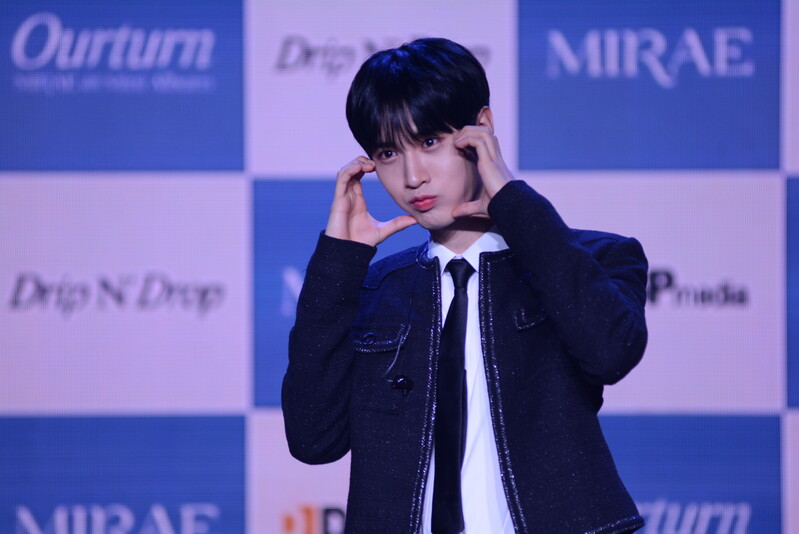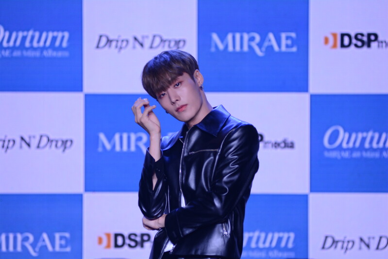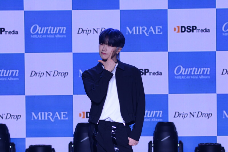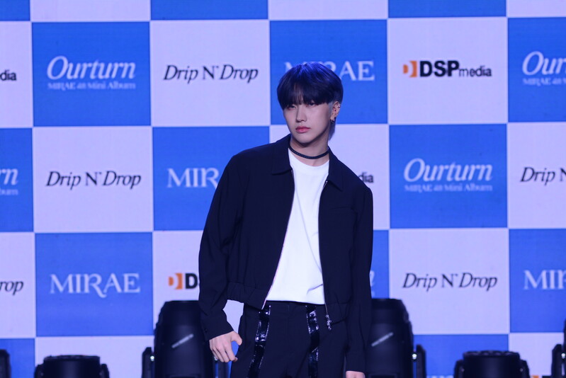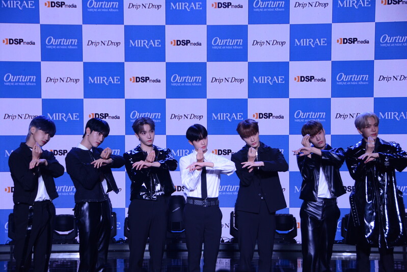 These photos taken during the media showcase of K-pop boy group MIRAE shows members of MIRAE posing for their individual photos and performing their title track "Drip N' Drop" from their upcoming 4th mini album "Ourturn."
