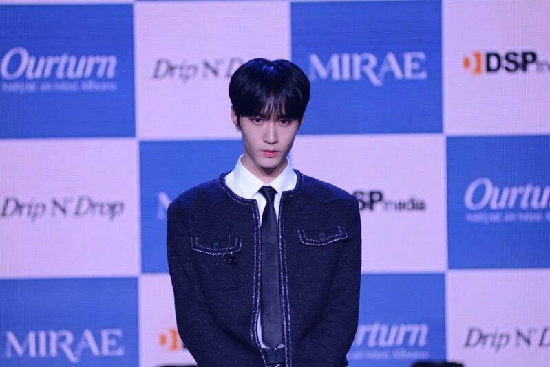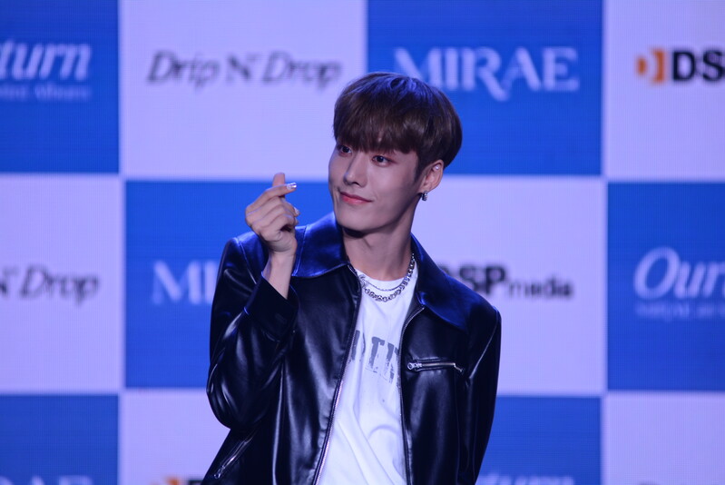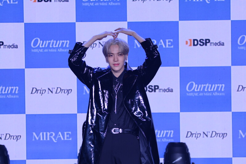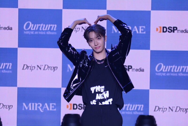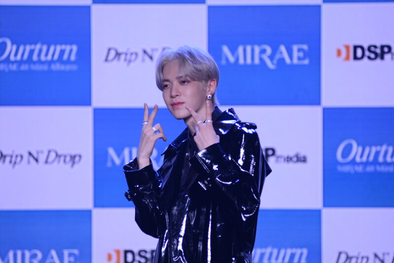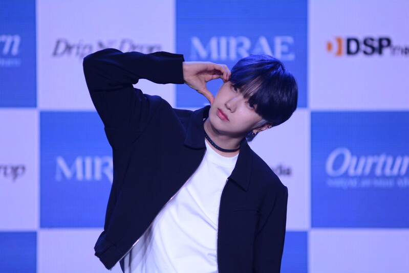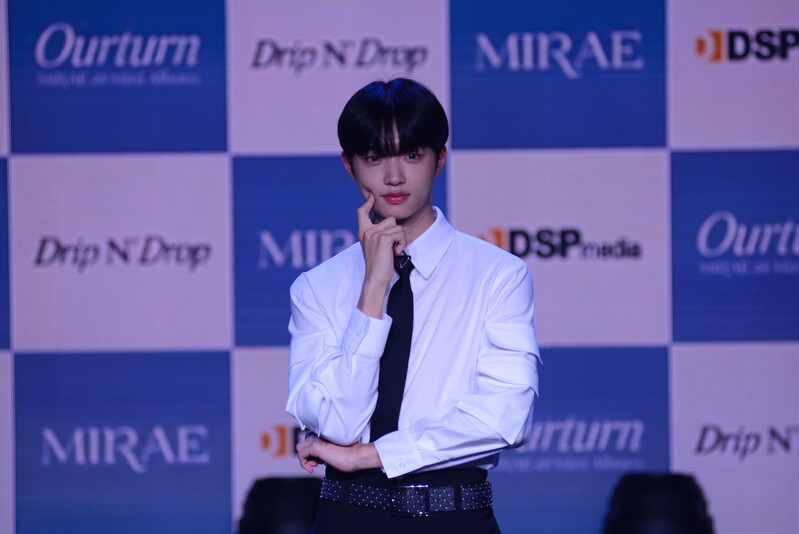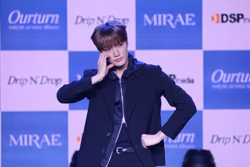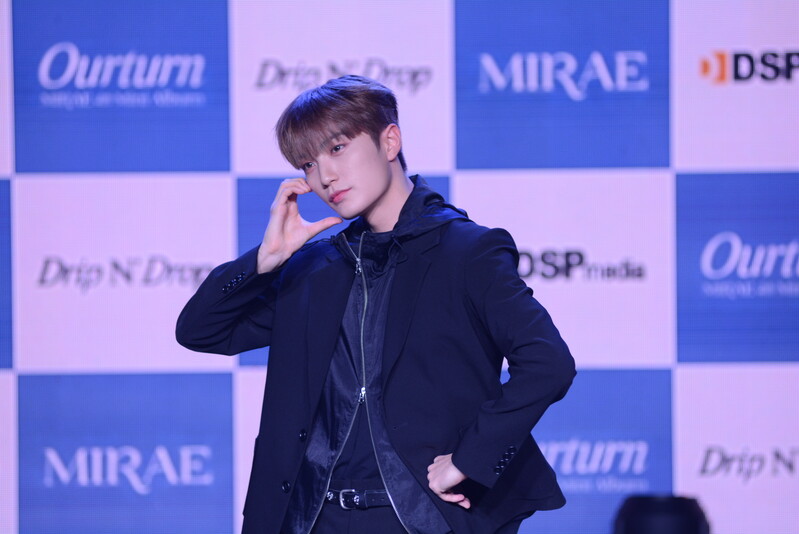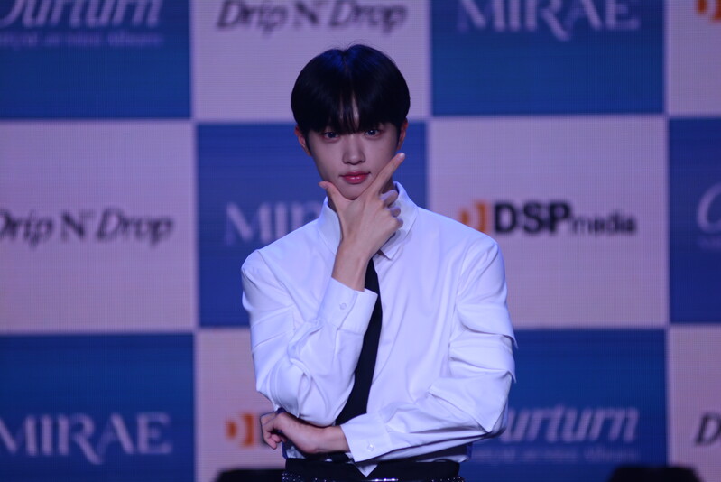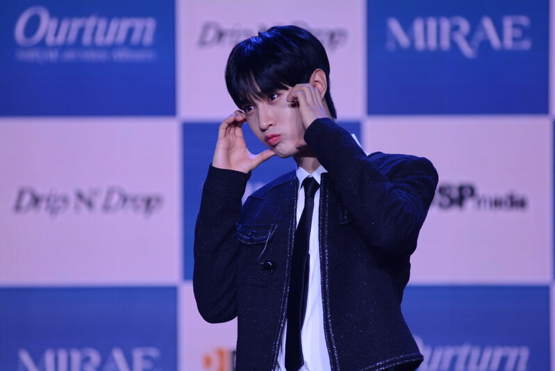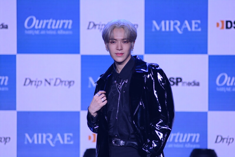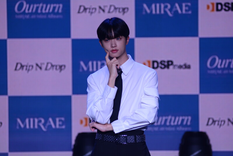 These photos taken during the media showcase of K-pop boy group MIRAE shows members of MIRAE posing for their individual photos and performing their title track "Drip N' Drop" from their upcoming 4th mini album "Ourturn."