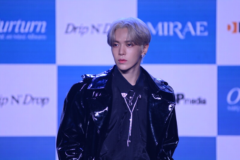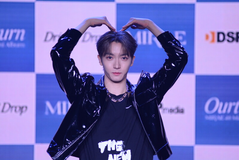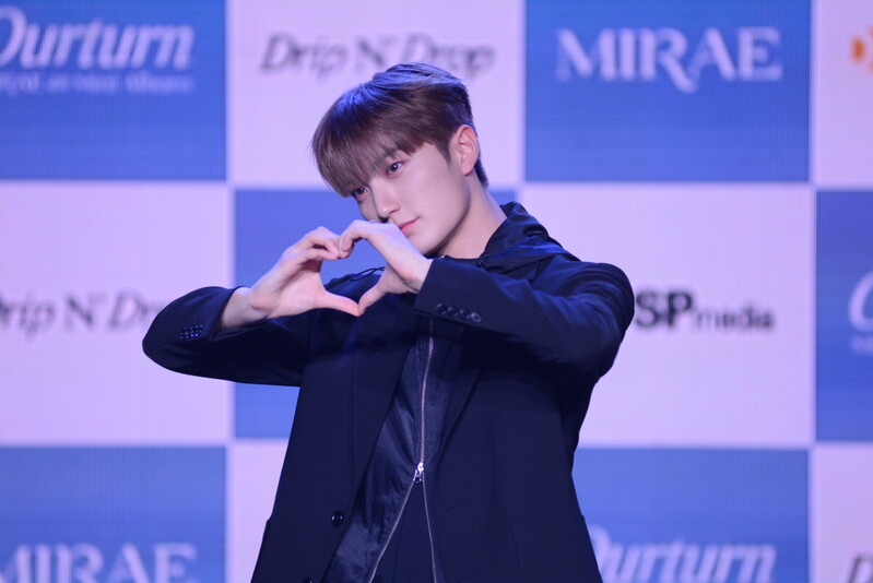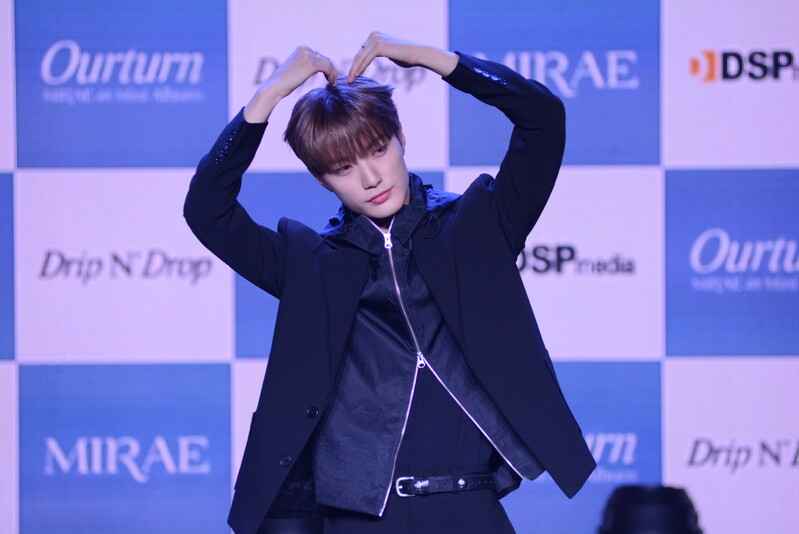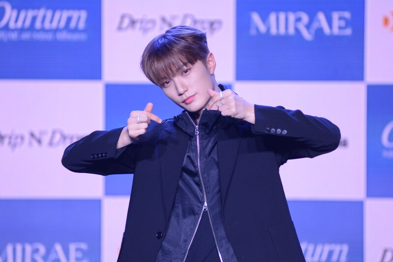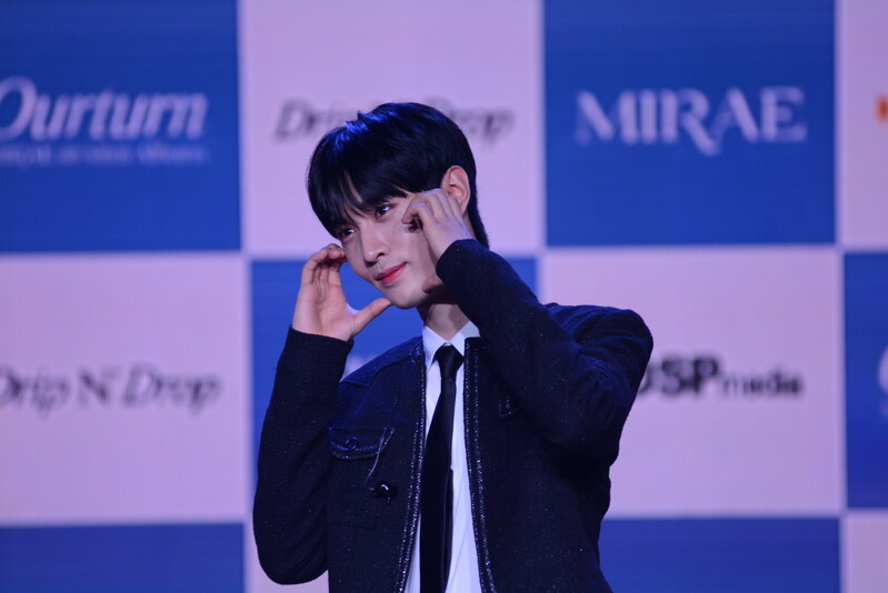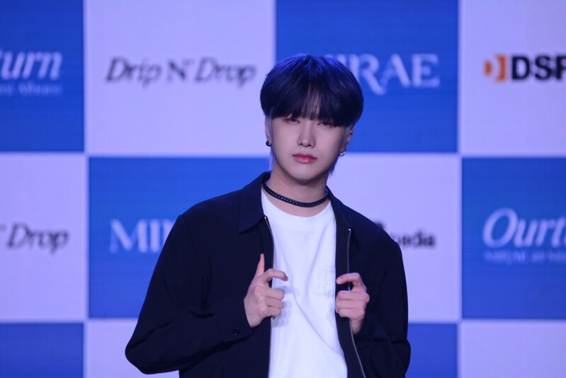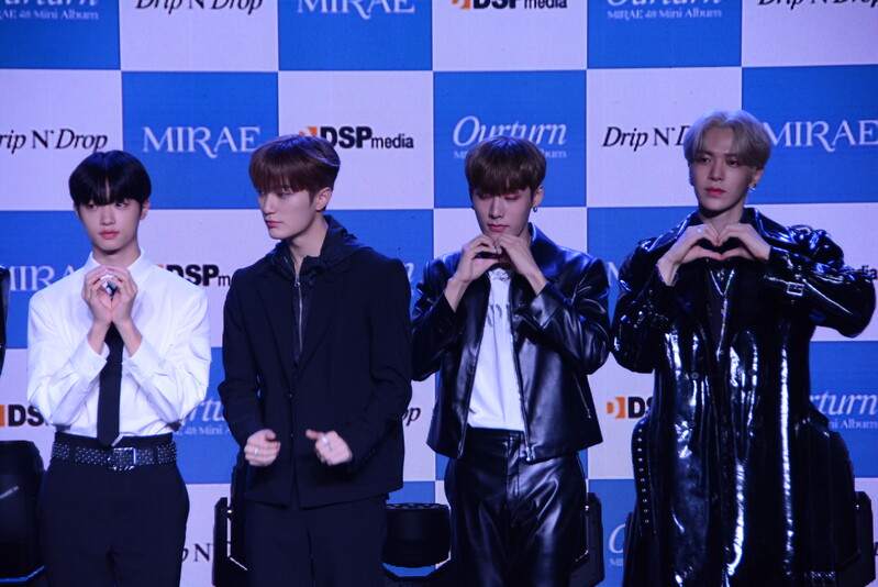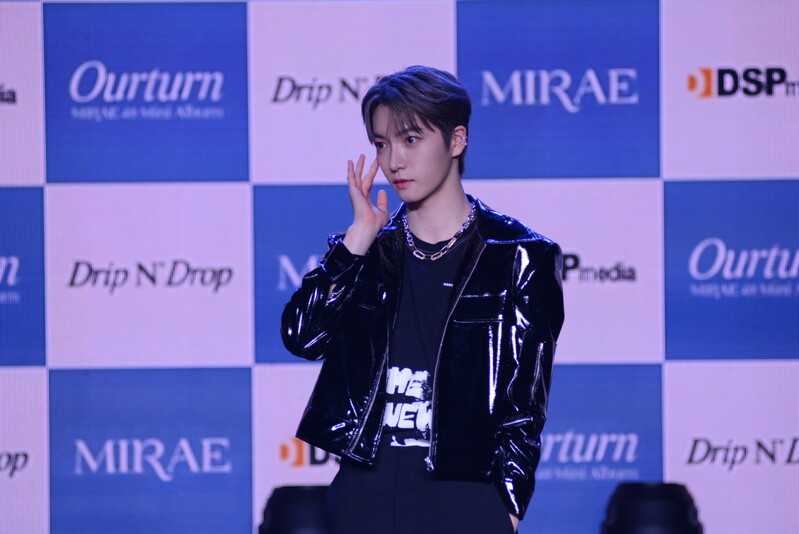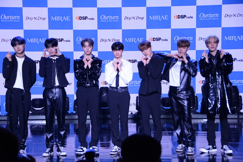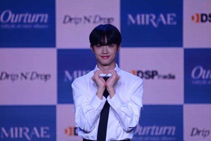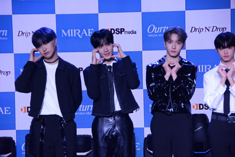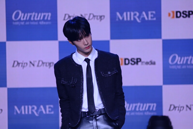 These photos taken during the media showcase of K-pop boy group MIRAE shows members of MIRAE posing for their individual photos and performing their title track "Drip N' Drop" from their upcoming 4th mini album "Ourturn."