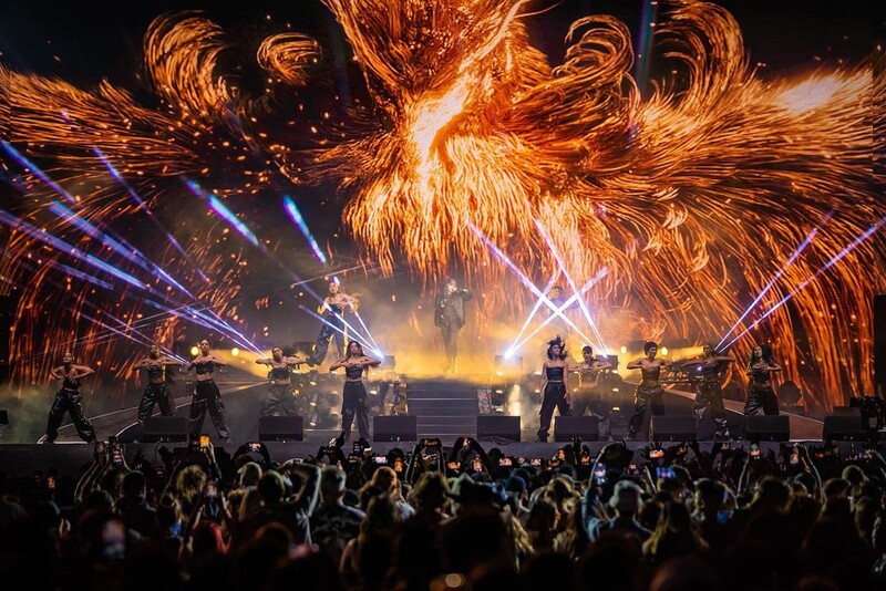 These photos, captured images from the official accounts of CL's instagram and Twitter, show K-pop girl group 2NE1's CL, who updated her Instagram regarding the group's recent appearance at Coachella for 88rising's "Head In The Clouds Forever."