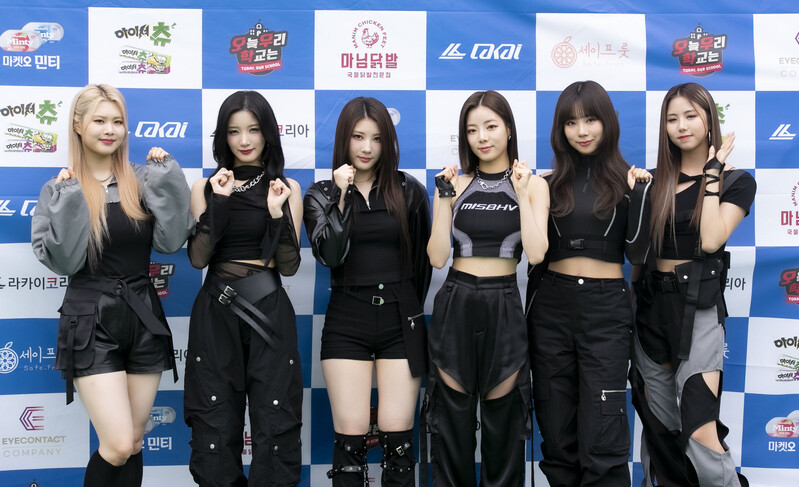 These photos taken during the photo session held on behalf of web series "Today, Our School" show members of K-pop girl group "Purple Kiss" posing for their individual and group photos.