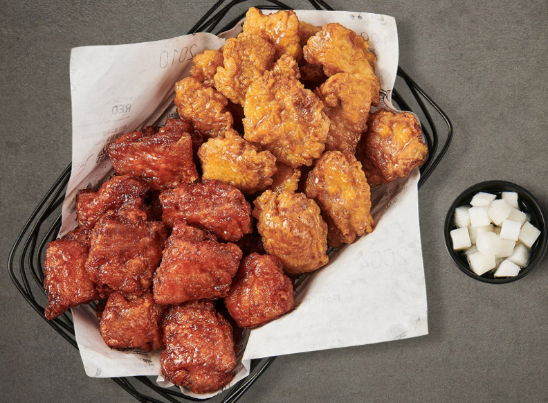 In addition to regular fried chicken, Korean-style chicken has a spicy yet sweet seasoning made with red pepper paste and starch syrup.