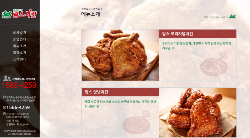 | ▲ This photo captured from Lim's Chicken' website shows the original fried chicken menu. (PHOTO NOT FOR SALE) (Yonhap) |