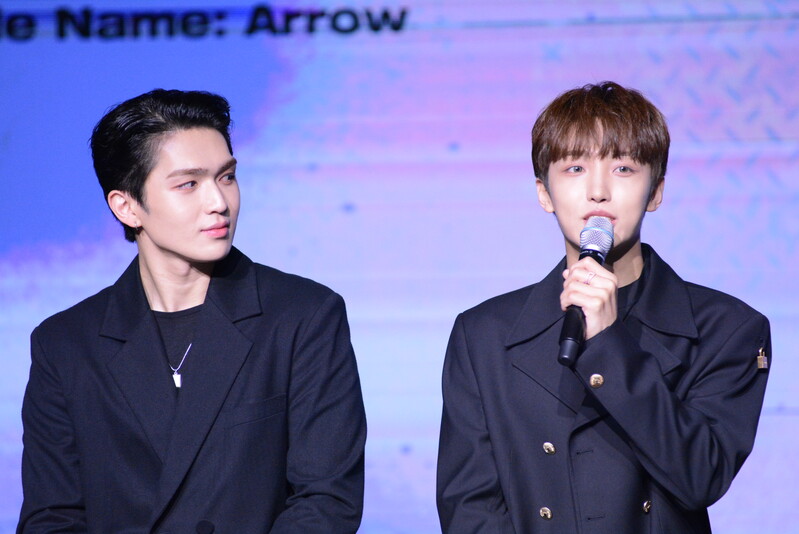 These photos taken during the media showcase of K-pop Boy group UP10TION shows members perform their title track "What if Love" from their 11th mini album "Code Name Arrow" and participate in question and answer session.