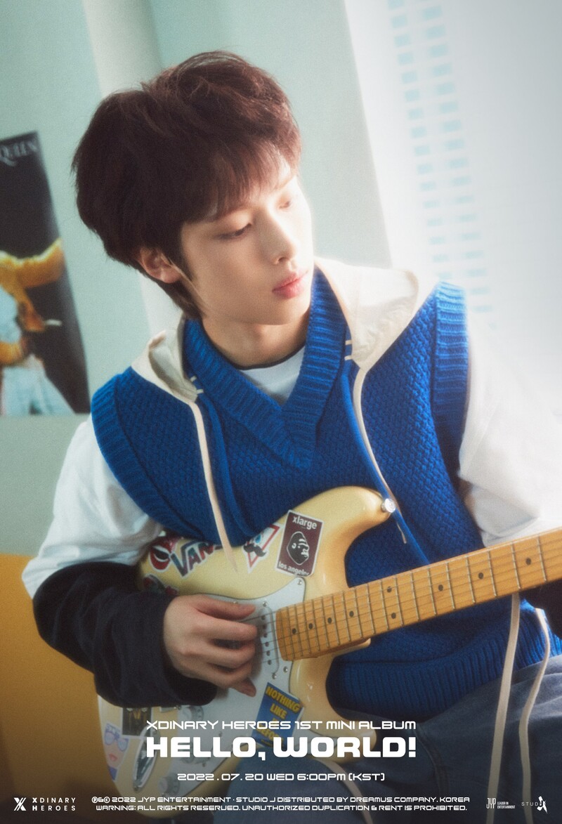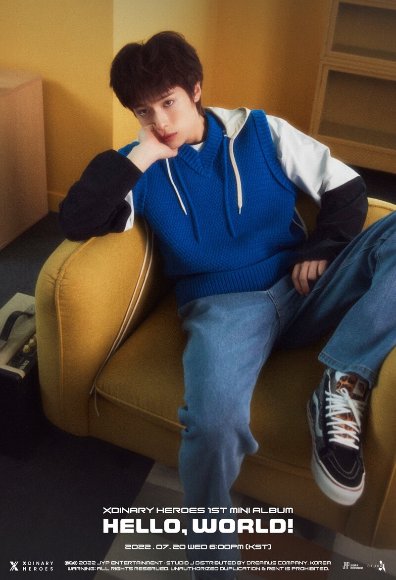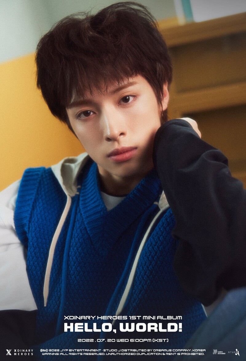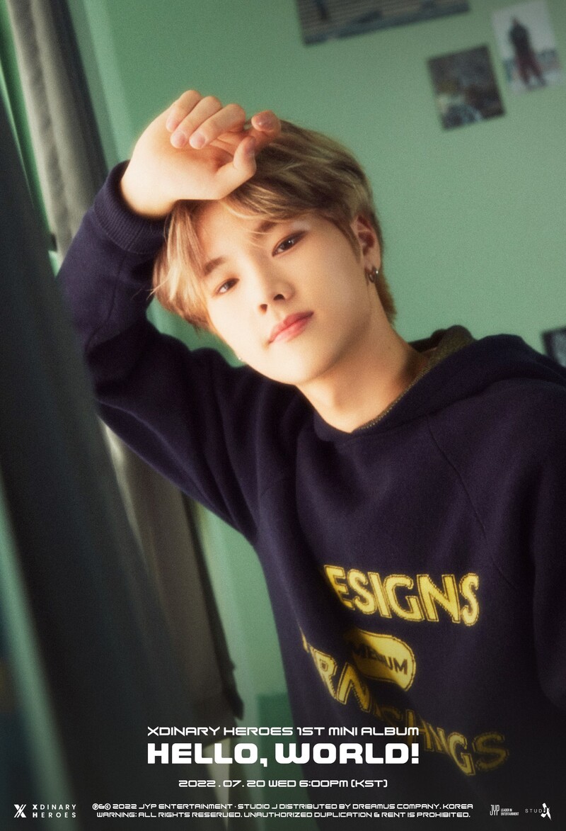 These photos, provided by JYP Entertainment, show individual teaser images of GUN-IL, JUNGSU, and GAON of boy band group Xdinary Heroes for their first mini album “Hello, world!,” which will be released on the upcoming 20th.