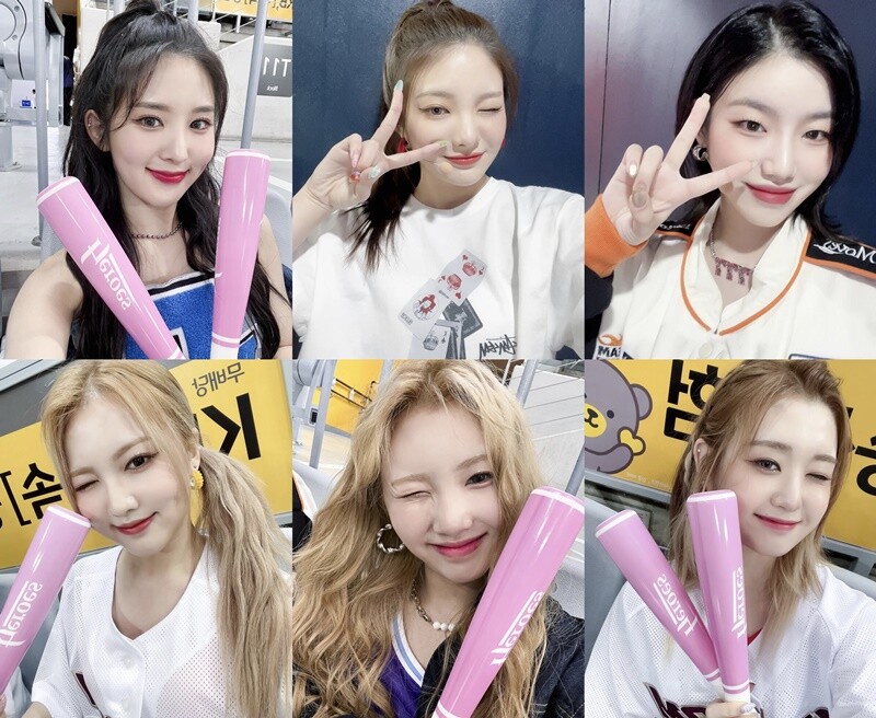 These photos, provided by eye contact company, show Tri.be with Kiwoom Heroes mascot.